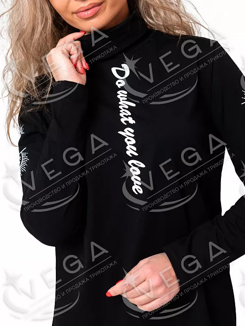Стильный лонгслив сшит из ткани кулирка с лайкрой Fircha - имеет эффект бархата, за счёт чего он очень мягкий, приятный к телу и на ощупь. Станет прекрасным дополнением для вашего гардероба. Он отлично сочетает в себе все преимущества свитшота, джемпера, водолазки и кофты. Идеальный фасон длинный рукав в совокупности с воротником стойкой превосходно подойдет для любого события. Все дизайнеры мира сходятся во мнении, что воротник стойка подчёркнёт в образе женственность и элегантность. Именно поэтому мы использовали такой фасон при создании данной модели. И наши клиенты подтверждают, что мы не ошиблись с выбором. Надев лонгслив с пиджаком, Вы создадите образ деловой и стильной девушки. А если Вы решите надеть его с джинсами и кроссовками и отправиться на прогулку, то получится образ утончённый и романтический. Можно купить лонгсливы и белого, и чёрного цвета. Каждый из них по своему хорош. Стильный принт дополнит Ваш образ. Мягкая хлопковая ткань водолазки приятная на ощупь и не нарушает воздухообмен, поэтому в ней тепло, когда на улице мороз и прохладно в жарком помещении. Добавление небольшого количества полиэстера продлевает изделию жизнь, позволяет сохранять идеальную форму и садится прекрасно по фигуре.
