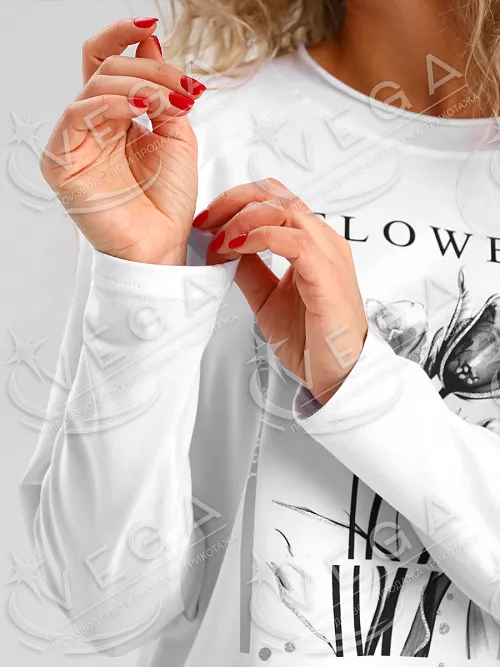 Представляем вам женский лонгслив из ткани кулирка с лайкрой. Он приятен к телу и на ощупь, не просвечивает и превосходно садится на фигуру. Главные особенности этой модели являются длинные рукава в стиле реглан, немного зауженные к запястью, полукруглый низ с маленьким принтом и необработанная горловина, она аккуратно подкручивается, что придает необычный вид. Толстовка, которую легко сочетать с любыми вещами из гардероба, подойдет как к деловому стилю, так и расслабленному спортивному комплекту, впишется в образ или легко дополнит романтический лук. Наш свитшот, как футболка с длинным рукавом, является одной из самых популярных моделей одежды круглый год. Подойдет в качестве домашней одежды, для офиса, фитнеса, прогулок или путешествий. Модель хорошо смотрится как на высоких, так и на невысоких девушках. Она станет вашим любимчиком при выборе образа на каждый день. Ориентируйтесь при выборе на российские размеры, но, если предпочитаете более свободный крой, закажите на размер больше или даже два. Стирать с вещами похожего цвета и вынимать сразу после стирки. Гладить с изнаночной стороны.