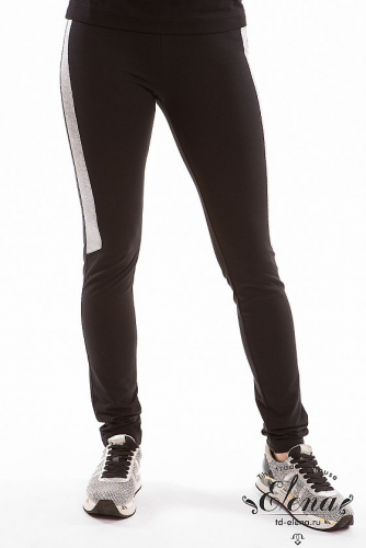 Лосины из однотонной футер петли с лайкрой, облегающего силуэта. По бокам вставки из вискозы (напыление "серебро"), пояс на резинке.
