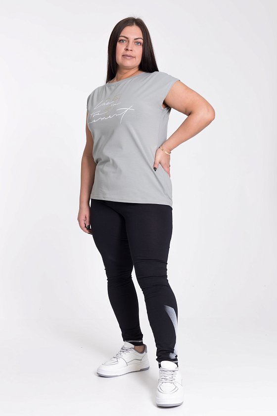 Лосины из х/б полотна с лайкрой. Внизу по бокам принт.