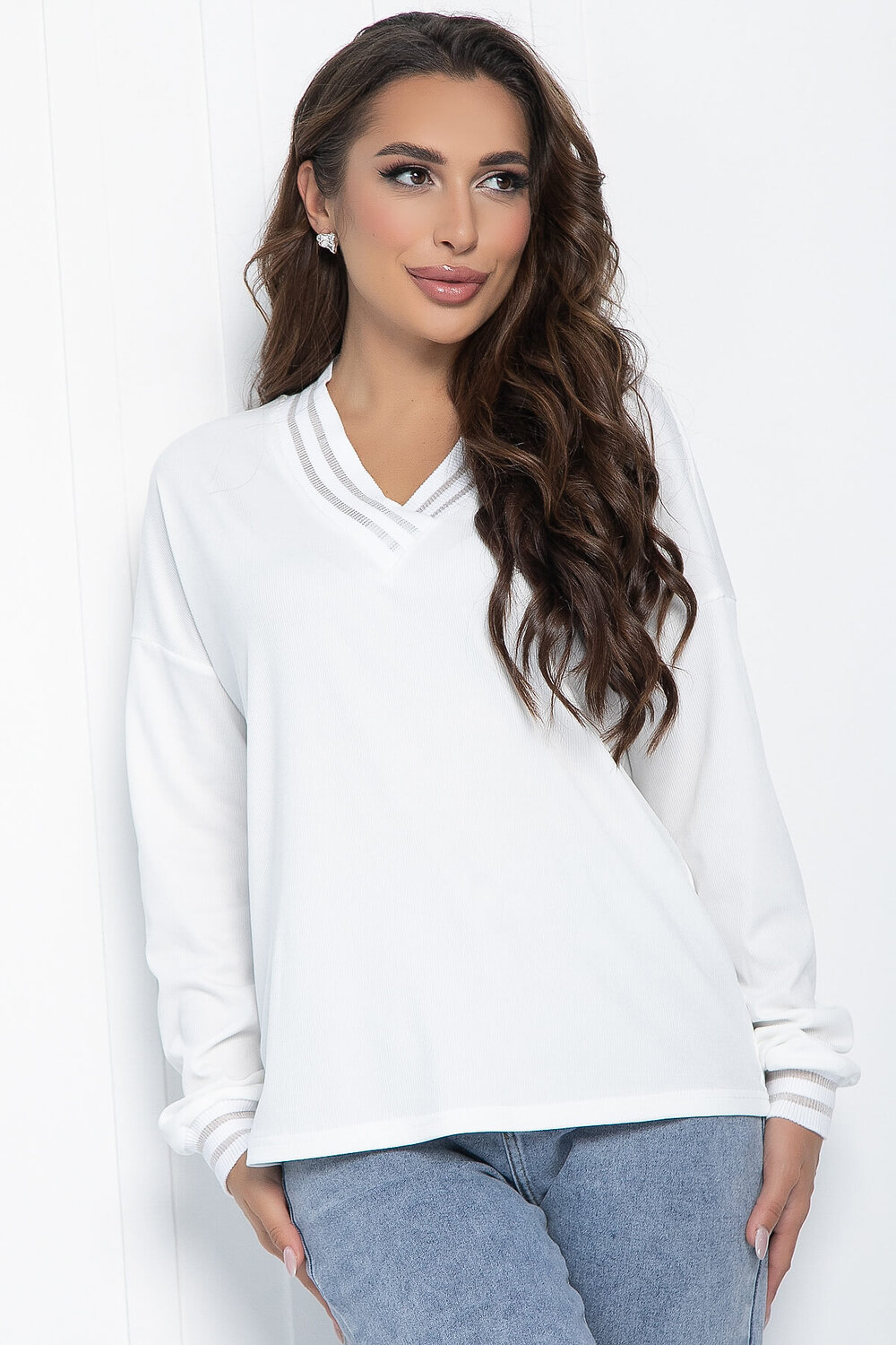 Базовый джемпер подойдёт для создания повседневных и офисных образов. Акцентные вставки из сетки деликатно украшают образ. Изделие имеет полуприлегающий силуэт, втачной длинный рукав со спущенным плечевым швом. Можно носить навыпуск или под заправку. Благодаря своему оттенку хорошо сочетается практически с любым низом.