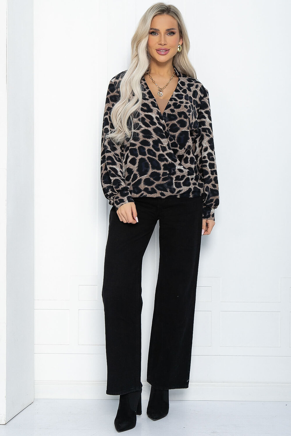 Эффектная блузка с леопардовым принтом и запахом, свободного кроя, которая обеспечит вам комфортную посадку. Эта блузка идеально подходит как для повседневного стиля, так и для создания нарядных образов для вечеринок, корпоративов или новогодних мероприятий. Образы с красивыми леопардовыми блузками выглядят очень женственно.