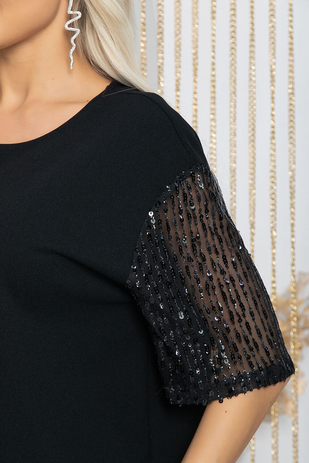 Декоративные элементы: пайетки на рукавах.
