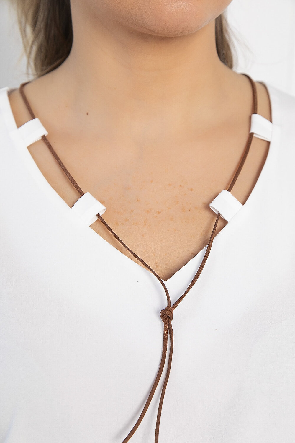 Декоративные элементы: петельки на груди с замшевым шнурком.