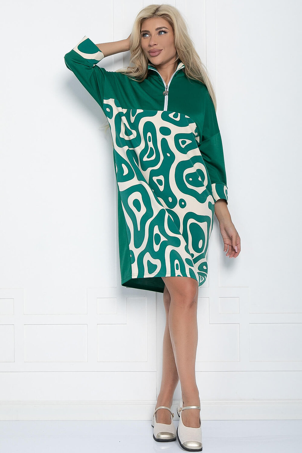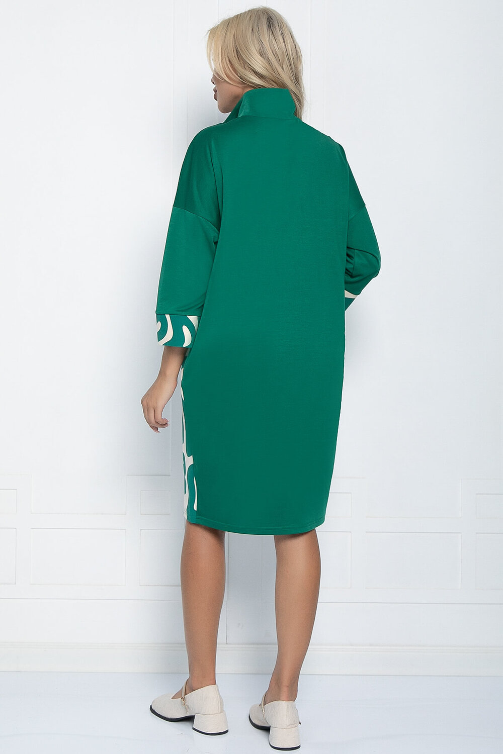 Платье из трикотажа создано, чтобы сводить окружающих с ума. Идеальный вариант на каждый день. Изделие свободного кроя поможет скрыть недостатки фигуры. Рукав со спущенным плечевым швом, по низу манжет из контрастной ткани.