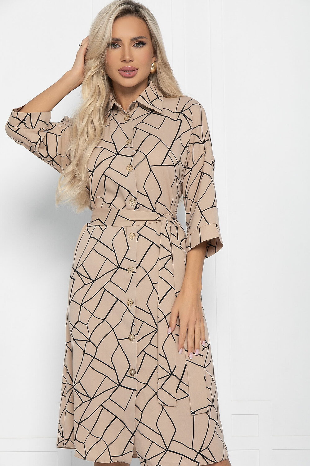 Это комфортное платье - станет вашим верным спутником в любых ситуациях. Воротник рубашечного типа переходящий в застёжку на пуговицах, спущенное плечо и рукав на манжете - все это, настоящая находка для девушек предпочитающих простоту и строгость в одном. Пояс из основной ткани в комплекте.