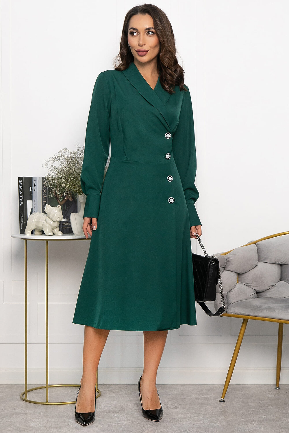 Платье на запах — это настоящая находка для женщин, которые хотят выглядеть стильно и уверенно. Оно сочетает в себе элегантность, красоту и изысканность, делая каждую женщину воплощением грации и уверенности. Длинный втачной рукав с акцентной манжетой придаёт платью дополнительную элегантность и подчёркивает изящество силуэта. Это платье идеально подходит для деловых встреч и офисного гардероба.