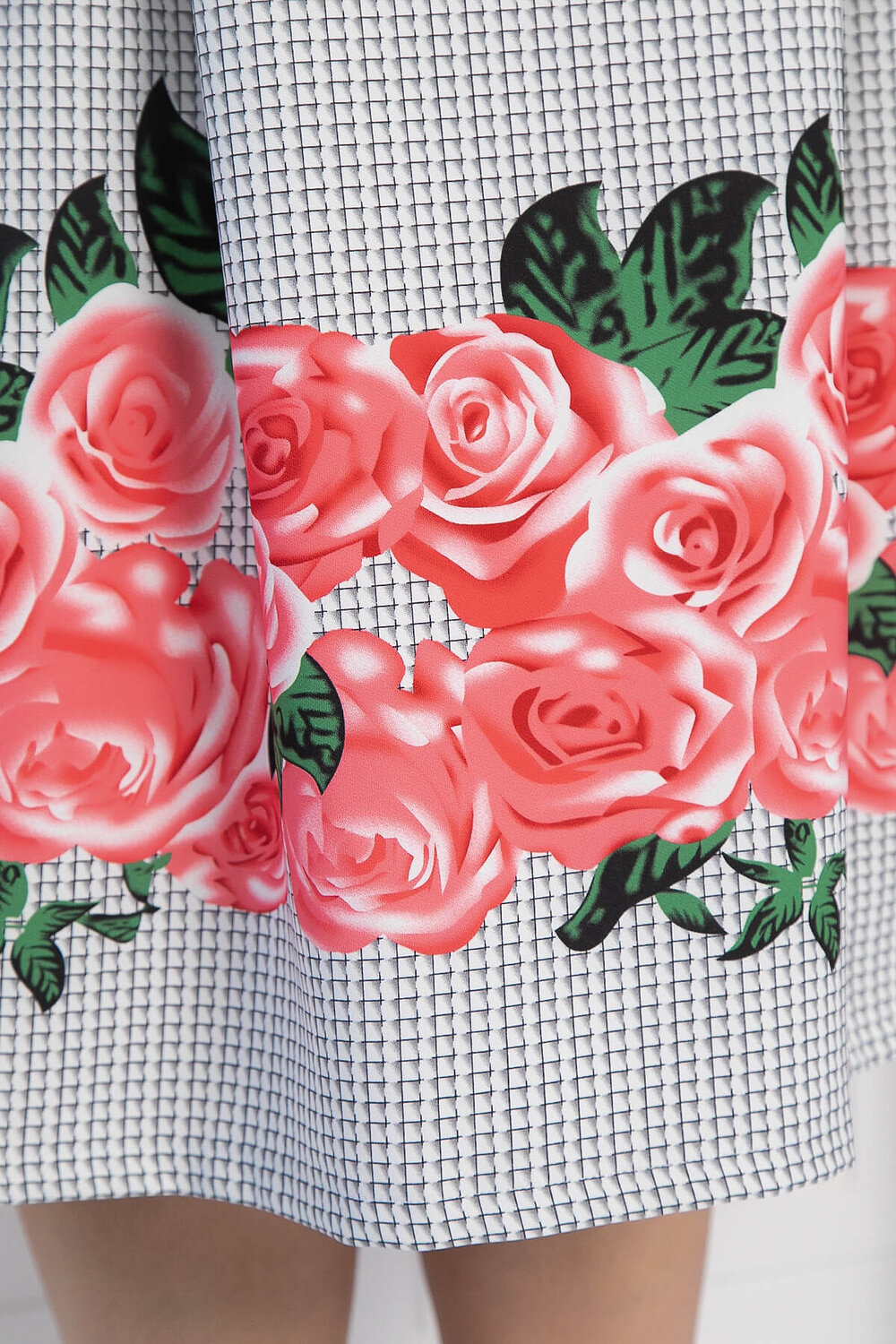Принт: серая клетка, кусты роз.
