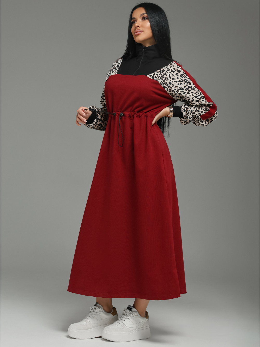 Современный силуэт с архитектурным кроем! Платье прямого покроя длины миди с длинными рукавами и фигурными вставками из футера.