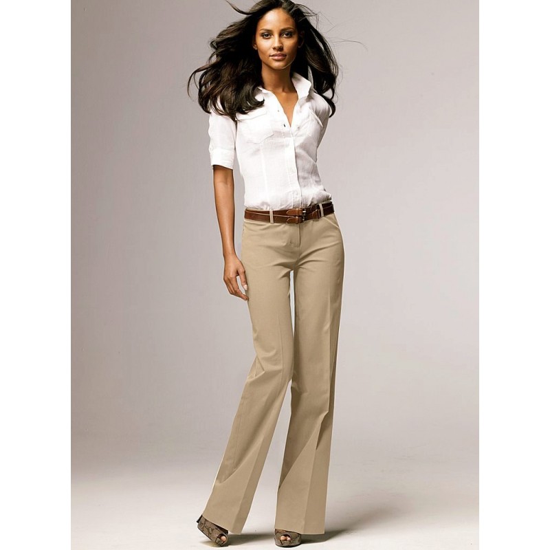 шикарные брюки бежевого цвета в мелкую полоску, с низкой посадкой