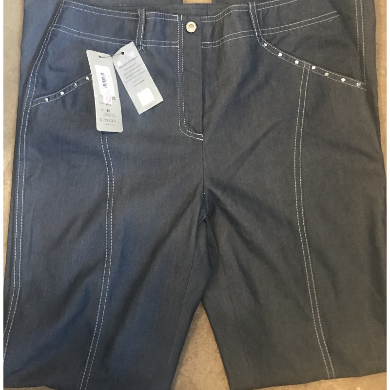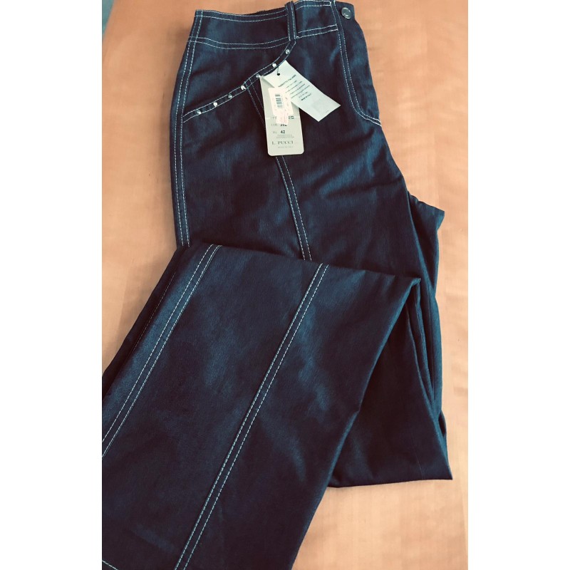 Замеры: на 44росс: объём талии 80 см; объём бёдер 100 см; шаговый шов 85 см; ширина штанины внизу 22 см.