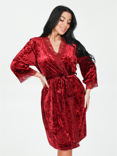 Пеньюар – лучшее модное изобретение, способное подчеркнуть женскую сексуальность. Он может стать изюминкой любого образа, подарить женщине уверенность в себе и любовь мужчины. Представляем Вам очаровательный комплект из роскошного бархата с отделкой из мягкого кружева. Он состоит из двух предметов: халат-пеньюар и сорочка на тонких бретельках.
