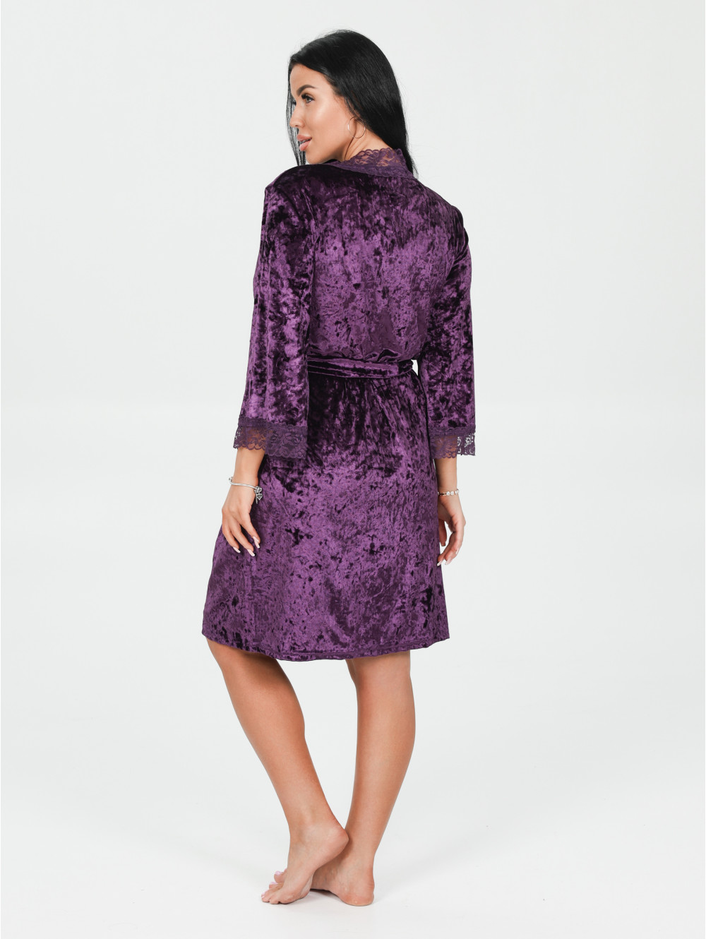 Пеньюар – лучшее модное изобретение, способное подчеркнуть женскую сексуальность. Он может стать изюминкой любого образа, подарить женщине уверенность в себе и любовь мужчины. Представляем Вам очаровательный комплект из роскошного бархата с отделкой из мягкого кружева. Он состоит из двух предметов: халат-пеньюар и сорочка на тонких бретельках.