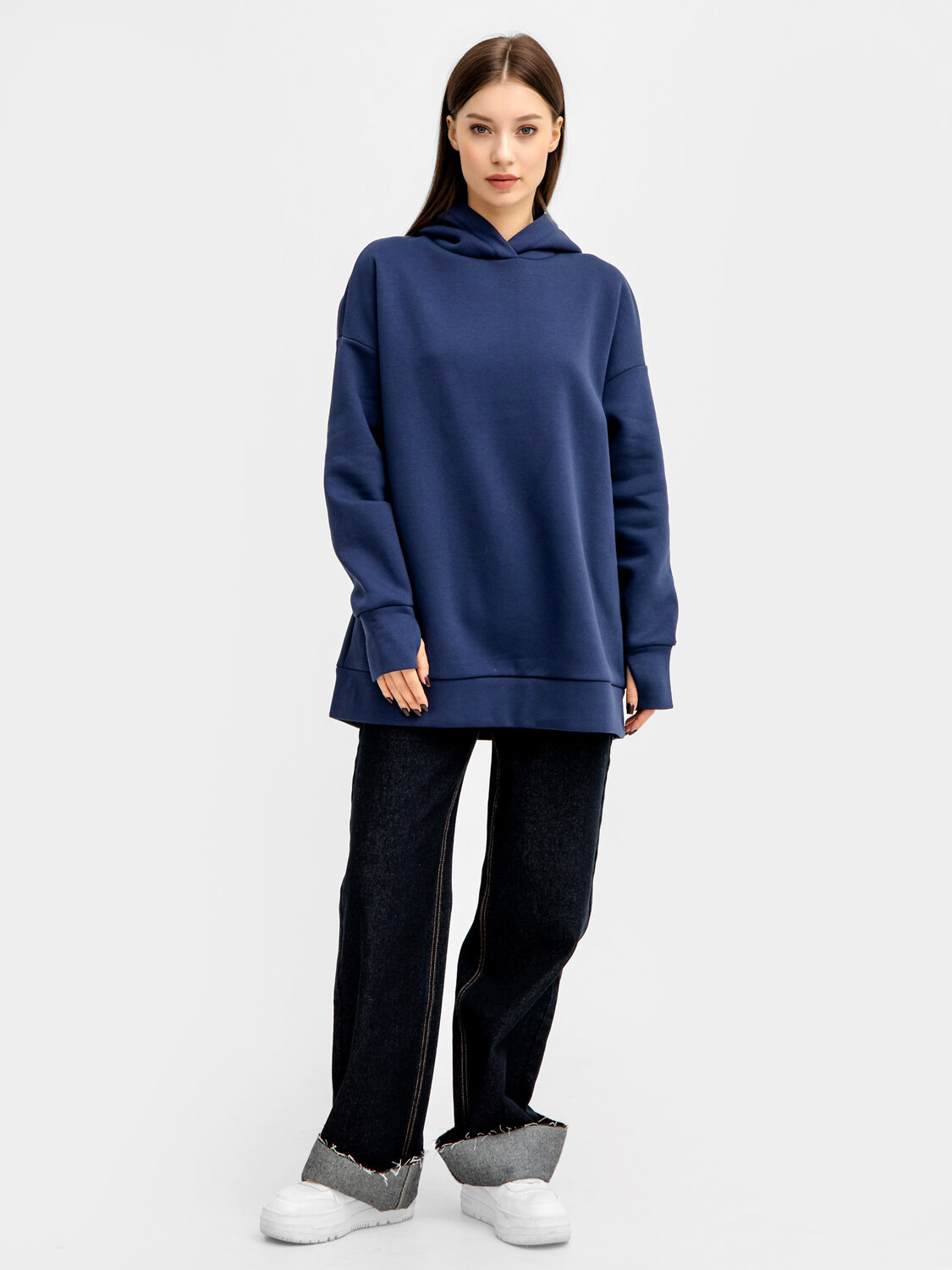 Анорак изготовлен из трикотажного полотна футер. Анорак свободного силуэта (оверсайз), длиной ниже линии бедер.