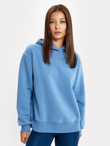 Анорак женскй изготовлен из трикотажного полотна футер. Анорак свободного силуэта. Горловина округлой формы, в горловину втачан капюшон. Капюшон с центральным швом. Плечо спущено, пройма углублена. Рукав втачной, длинный. По низу рукава широкая отрезная манжета из рибаны. По низу жакета широкий отрезной пояс из рибаны.