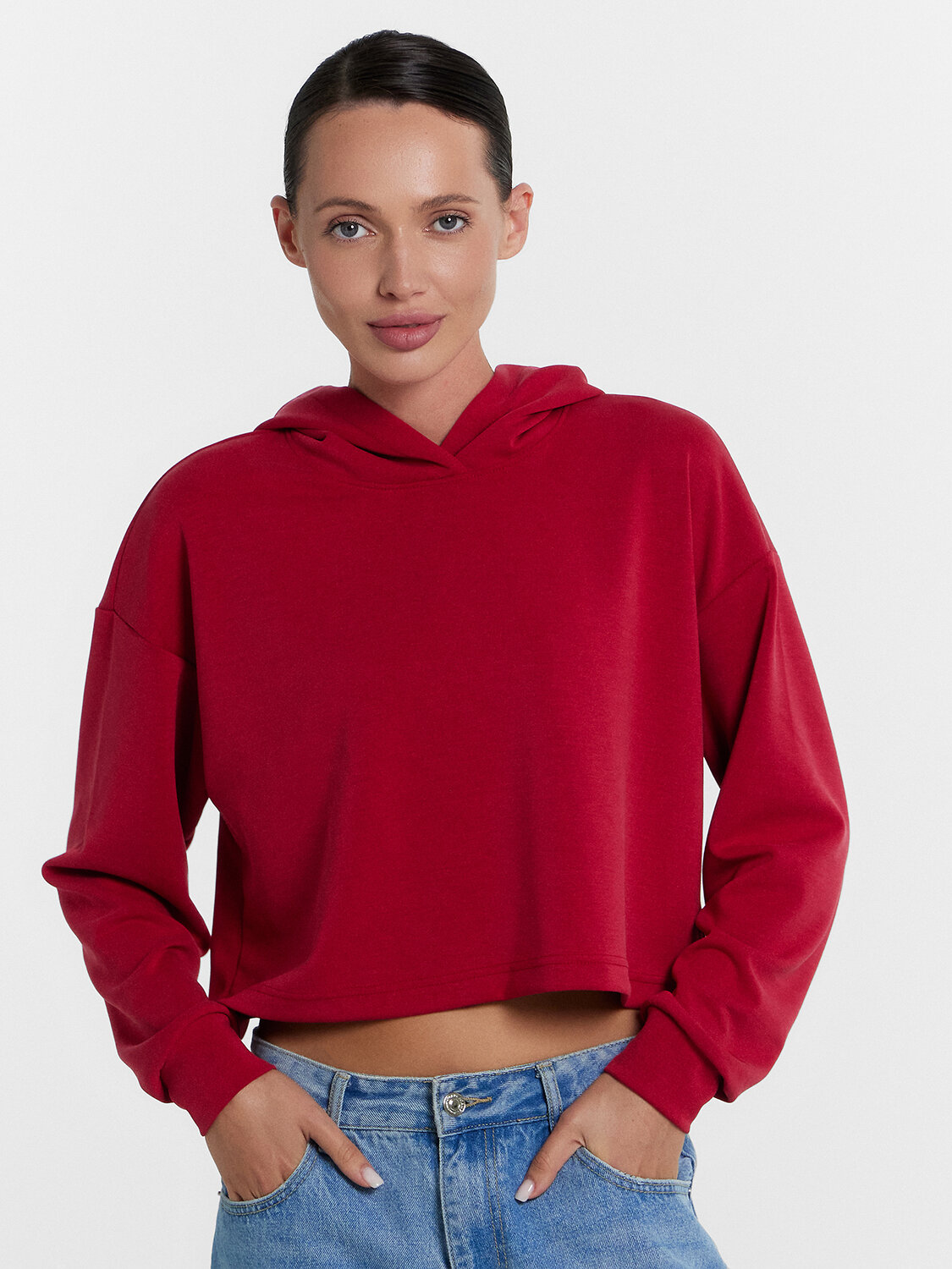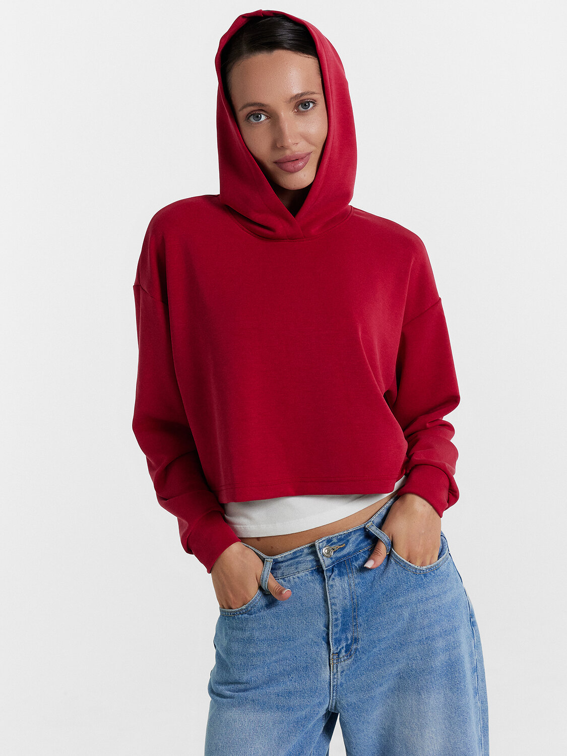 Худи женское из интерлока свободного силуэта.