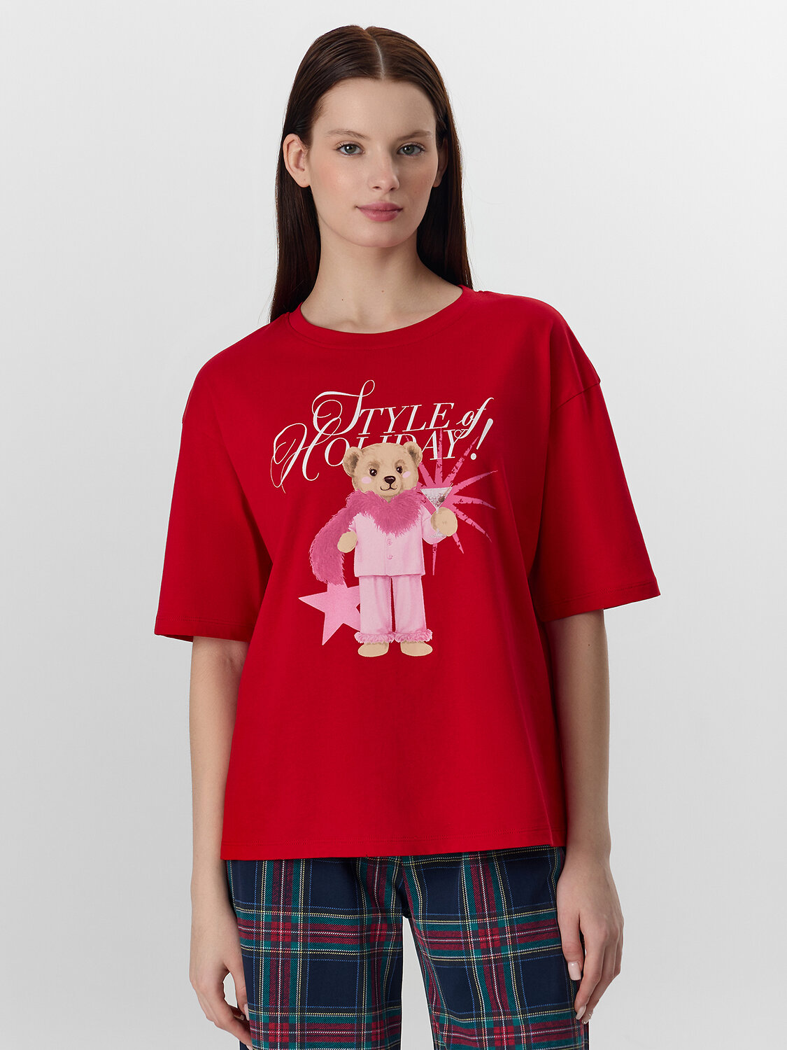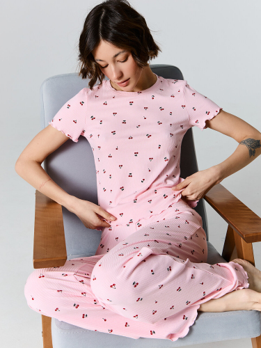 Футболка свободного силуэта. Горловина круглой формы, обтачка из основного полотна. Рукава втачные свободные, линия плеча слегка спущена. Низ рукавов и футболки в подгибку.