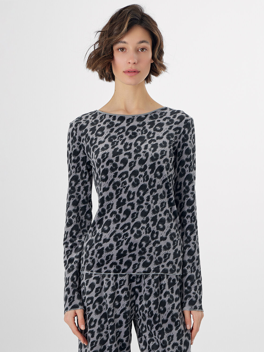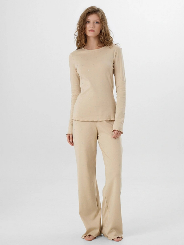 Джемпер с круглым вырезом и длинными рукавами мягко облегает фигуру, не стесняя движений. Брюки со средней посадкой на мягком эластичном поясе обеспечивают комфорт и удобную посадку. Два вместительных кармана в боковых швах с мягкой подкладкой внутри добавляют модели практичности.