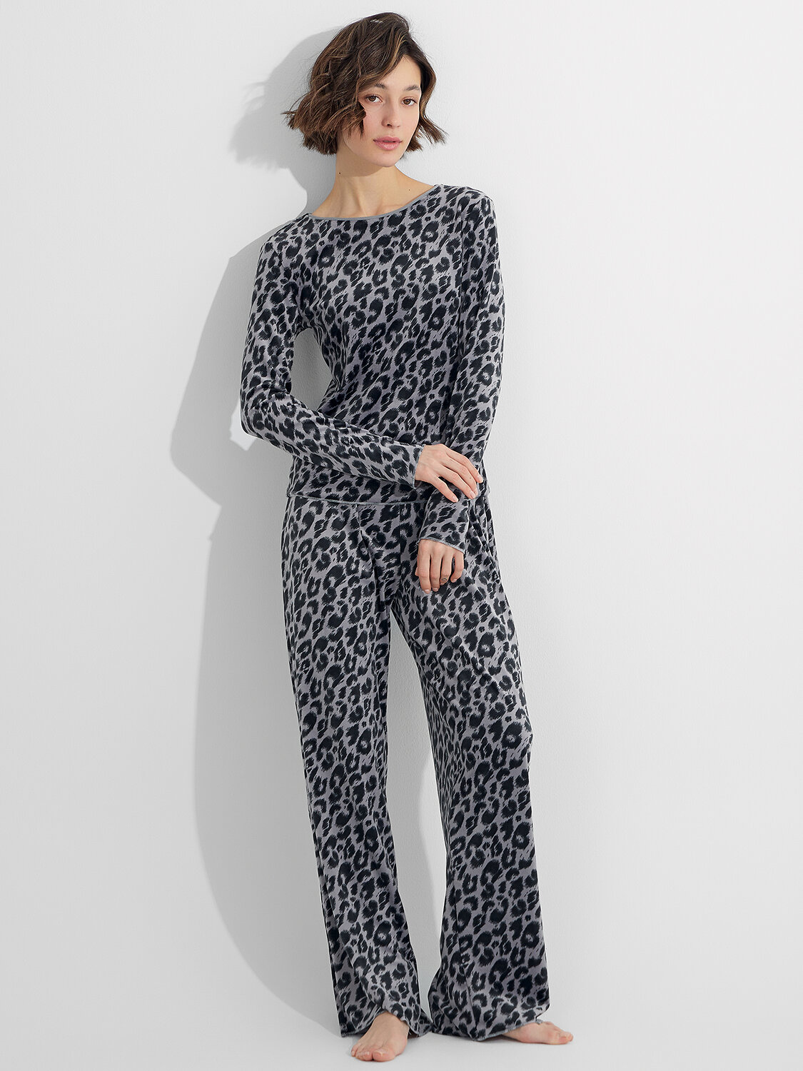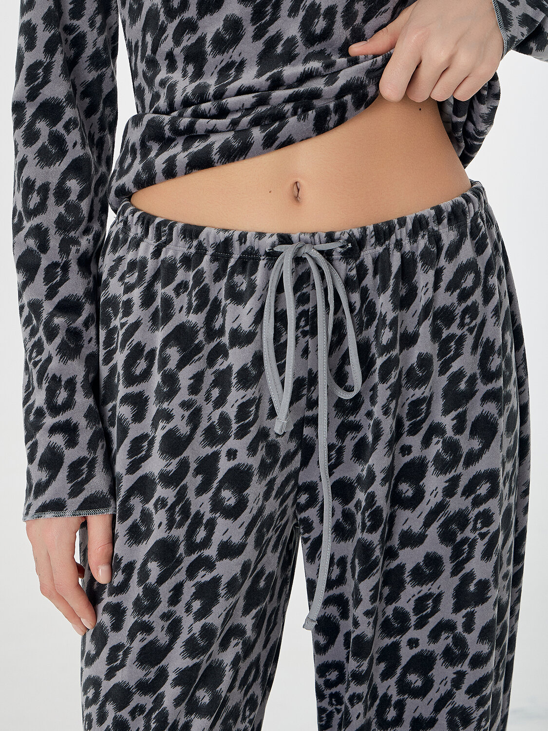 Домашняя пижама из велюра подарит вам ощущение уюта и мягкости. Этот уютный ансамбль состоит из джемпера полуприлегающего силуэта и свободных брюк, созданных для полного расслабления.