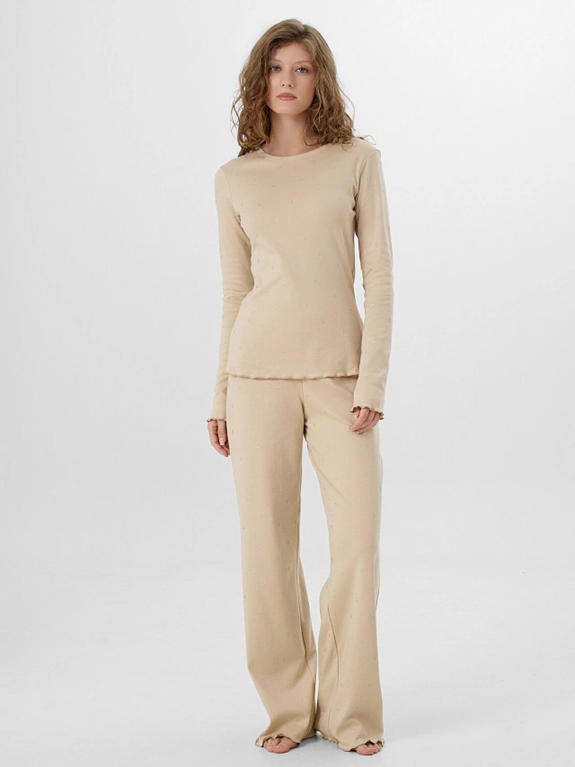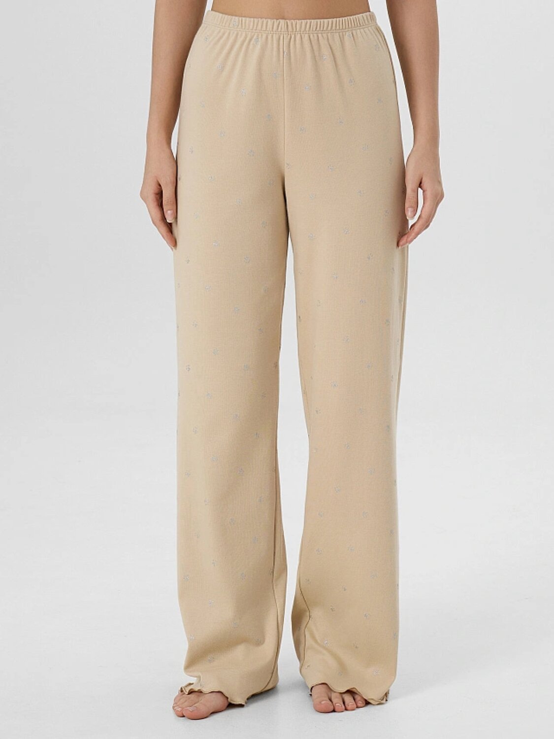 Брюки с широким поясом на мягкой резинке— воплощение домашнего уюта. Эластичная лента внутри пояса бережно фиксирует изделие, не оставляя следов на коже, а низ брючин тщательно прошит надежной строчкой, которая сохраняет идеальную форму.