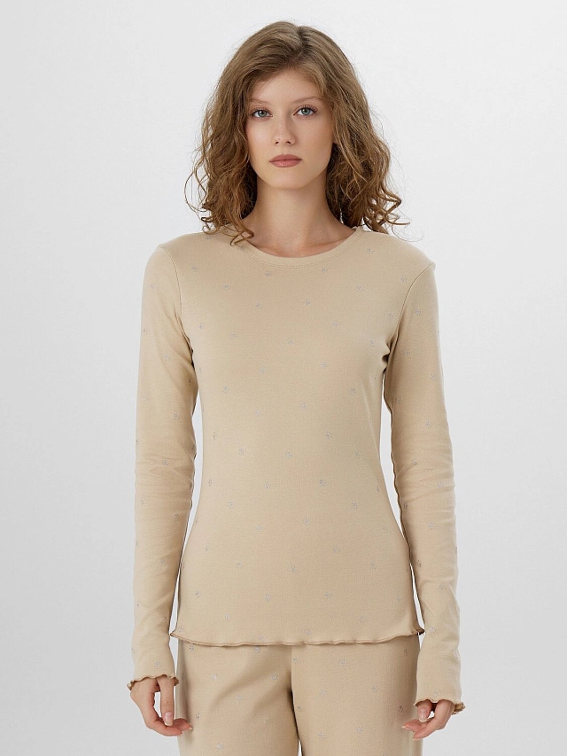 Особое внимание уделено деталям: края рукавов и подол аккуратно обработаны прочной двойной строчкой. Такая обработка гарантирует, что швы останутся гладкими и эластичными даже после многих стирок.