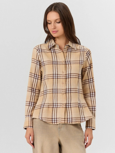 Женская рубашка свободного силуэта в нежном оттенке — универсальная основа для стильных повседневных образов. Изделие выполнено из хлопка, который обеспечивает комфорт в течение всего дня, позволяя коже дышать и сохраняя идеальную посадку. Рубашка с длинным рукавом дополнена аккуратным отложным воротником, придающим образу элегантность, и регулируемыми манжетами для индивидуальной посадки.