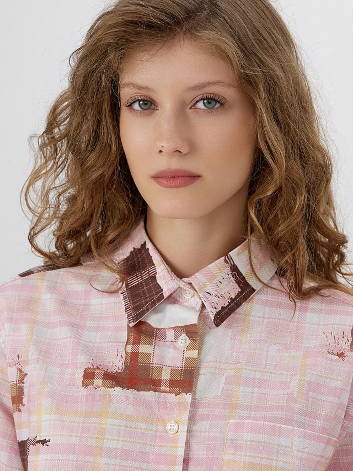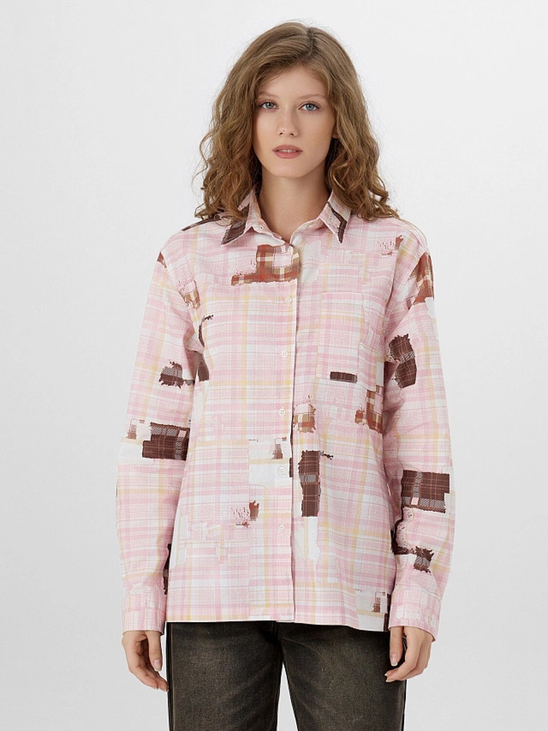 ст. цена1320руб.! MARK FORMELLE Рубашка 122963розовая клетка из патчей