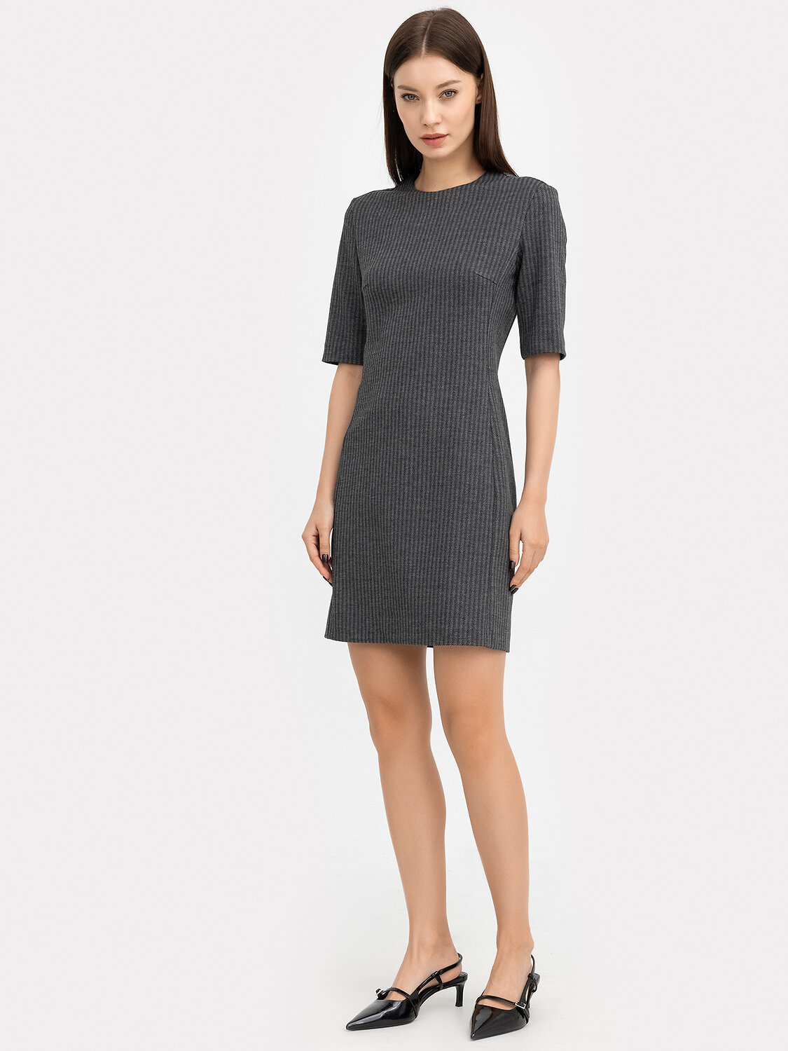 Стильное платье-футляр с коротким рукавом из плотного натурального высококачественного материала - академик. Платье женское выполнено с небольшим прилеганием; с круглой горловиной плотно прилегающей к шее. Втачной рукав длиной до локтя, узкий с небольшой свободой. В среднем шве спинки выполнена потайная молния. Спереди изделия расположены интересные вертикальные рельефы. Длина изделия до середины бедра. Красивое базовое платье, которое отлично садится по фигуре. Стильное, его можно надеть на работу в офис, учебу, а добавив аксессуары, пойти на вечеринку, свидание или в кофейню. Давно ищите универсальное платье, которое не будет просто лежать в вашем шкафу - эта модель точно для вас. Широкий размерный ряд, актуальные расцветки. Купить платье женское недорого можно у нас на сайте или в магазине Mark Formelle!