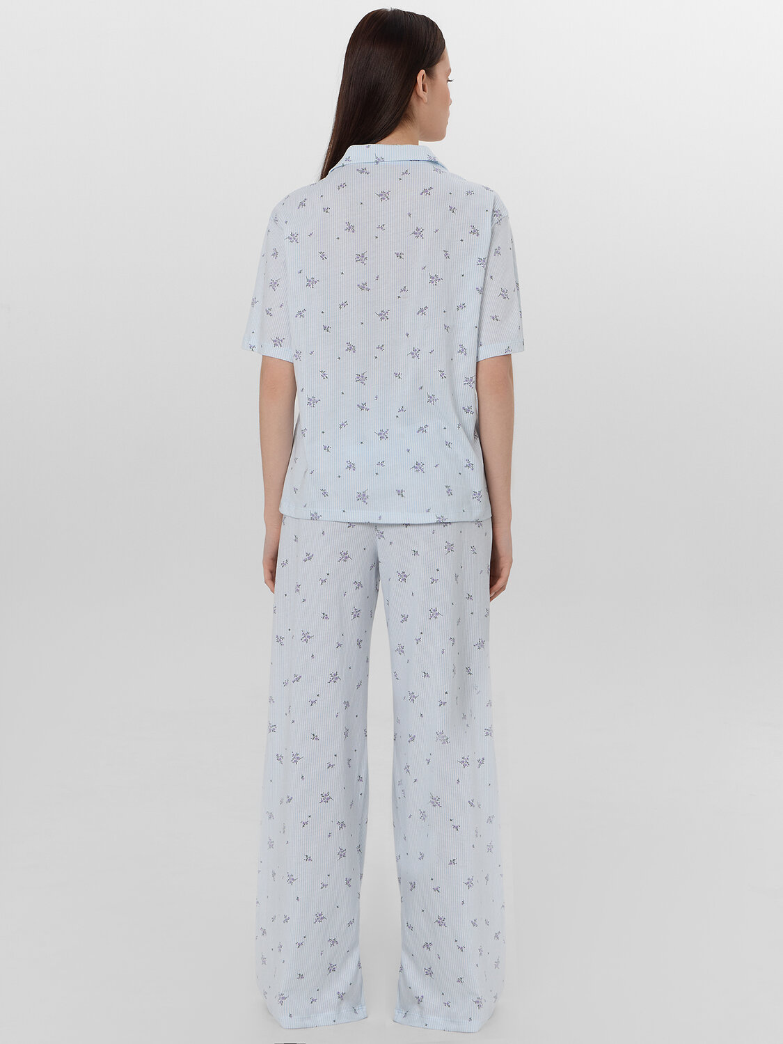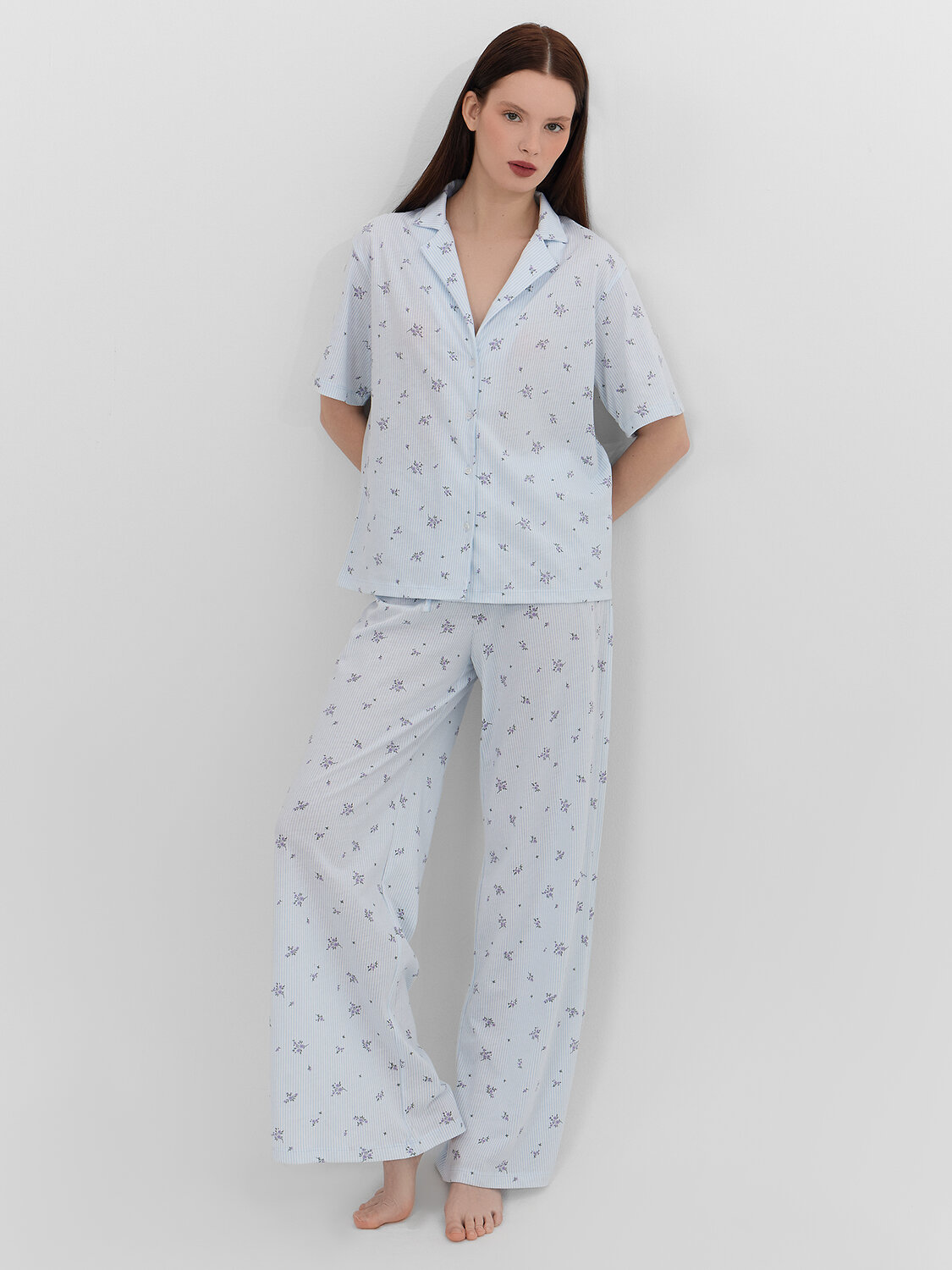 Женская домашняя пижама из рубашки и брюк создана для тех, кто ценит уют и комфорт. Натуральный хлопок обеспечивает нежность и воздухопроницаемость, даря коже приятные ощущения и полную свободу движений. Рубашка свободного кроя с отложным воротником и короткими рукавами выглядит стильно и элегантно. Классическая застежка на пуговицы удобна в использовании, а аккуратная обработка всех краев обеспечивает долговечность носки.