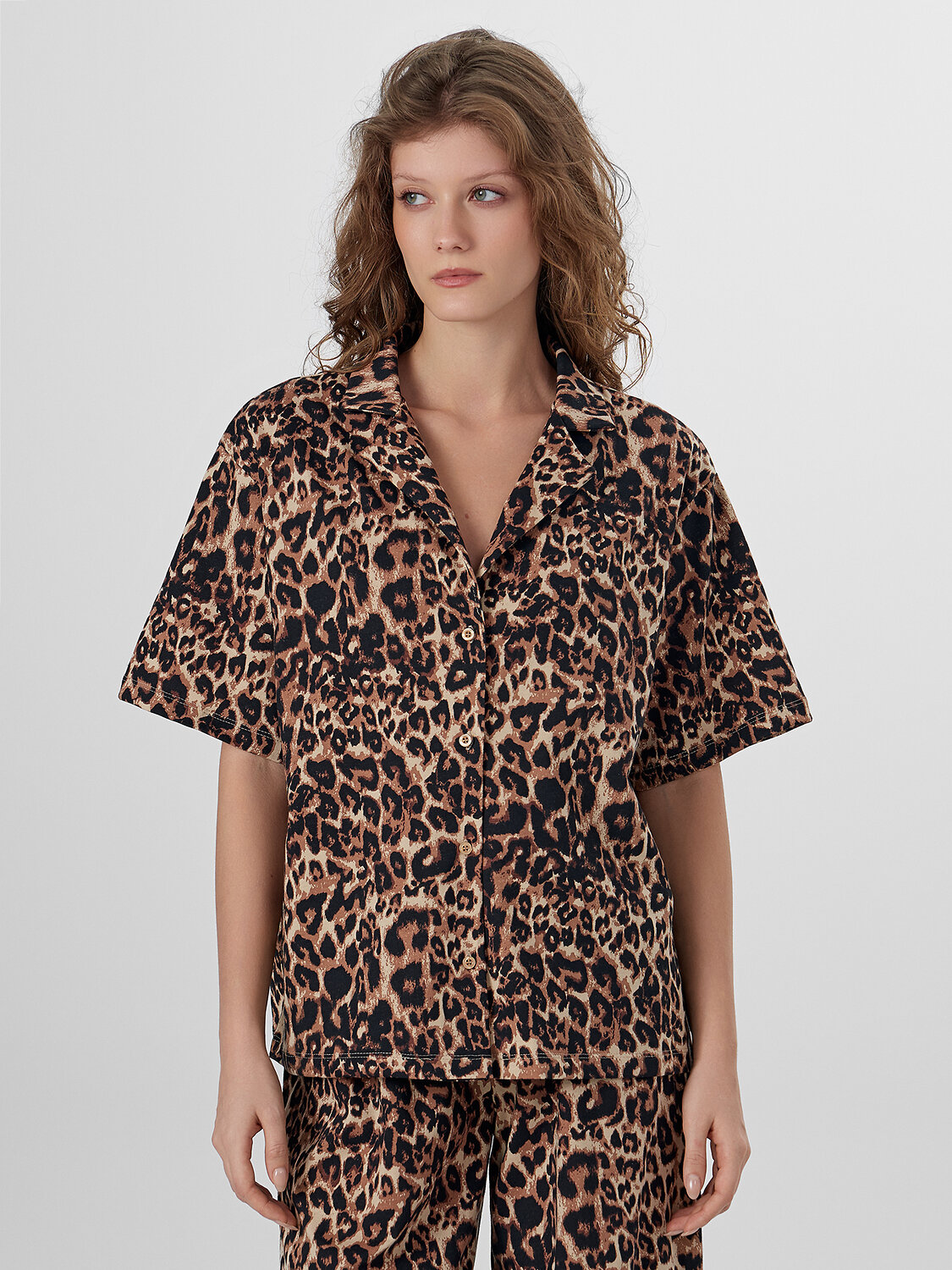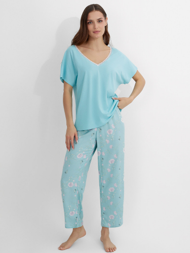 Женская домашняя пижама из рубашки и брюк создана для тех, кто ценит уют и комфорт. Натуральный хлопок обеспечивает нежность и воздухопроницаемость, даря коже приятные ощущения и полную свободу движений. Рубашка свободного кроя с отложным воротником и короткими рукавами выглядит стильно и элегантно. Классическая застежка на пуговицы удобна в использовании, а аккуратная обработка всех краев обеспечивает долговечность носки.