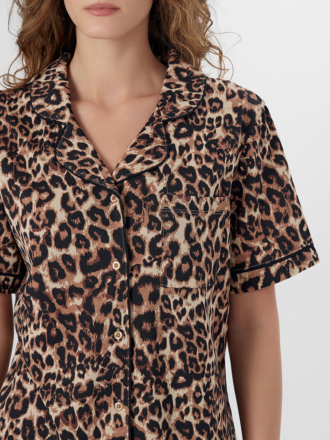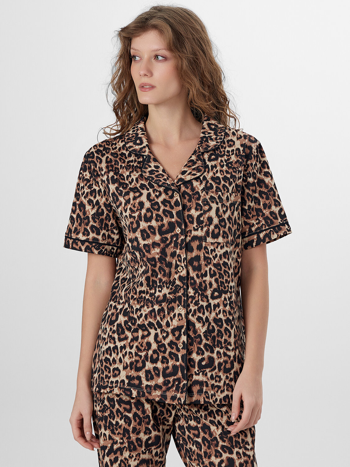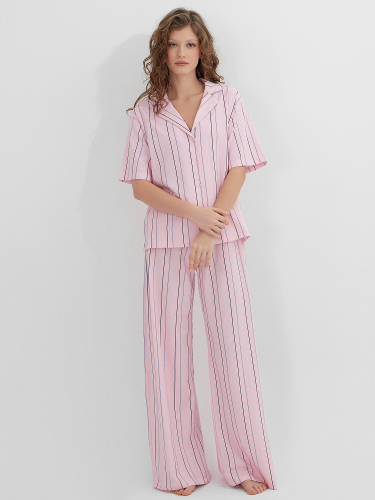 Джемпер прямого силуэта дополнен накладным карманом и застежкой на пуговицы. Короткие рукава с аккуратными манжетами и кантом подчеркивают внимание к деталям. Женская пижама с бриджами на эластичном поясе обеспечивает полную свободу движений, не сковывая даже во время сна. Мягкая резинка внутри пояса бережно фиксирует изделие на талии.