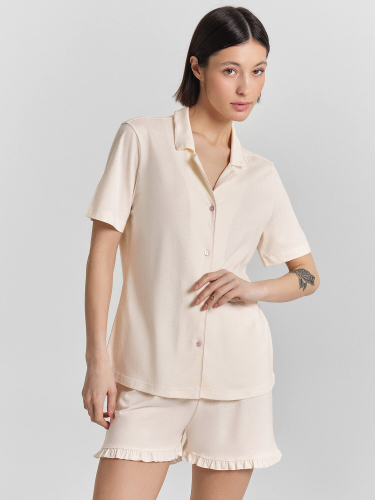 Домашний комплект подарит вам ощущение невесомого комфорта и безупречного стиля. Этот элегантный ансамбль состоит из блузы и брюк, создающих гармоничный образ для расслабленного отдыха.