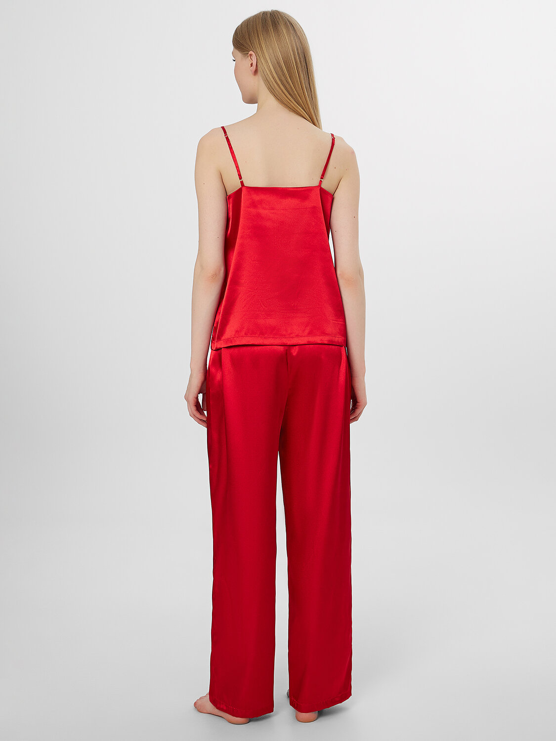 Состав с преобладанием полиэстера и добавлением эластана обеспечивает легкость и упругость ткани. Комплект не мнется, сохраняет форму в течение дня и дарит коже приятную прохладу. Этот набор станет вашим любимым спутником для спокойного сна, утреннего кофе и моментов полной релаксации в стенах дома.