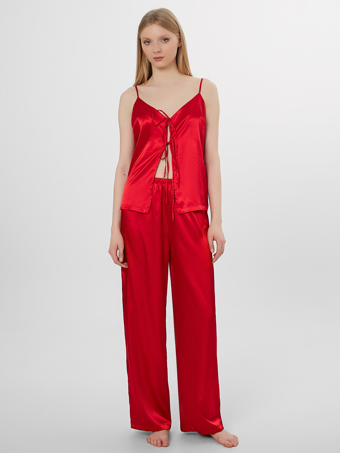 Блуза на тонких регулируемых бретелях отличается свободным прямым кроем, который мягко скользит по фигуре. Аккуратная обработка верха и эластичные сборки обеспечивают идеальную посадку. Декоративные завязки по переду добавляют элемент нежности и позволяют регулировать степень прилегания под ваш вкус.