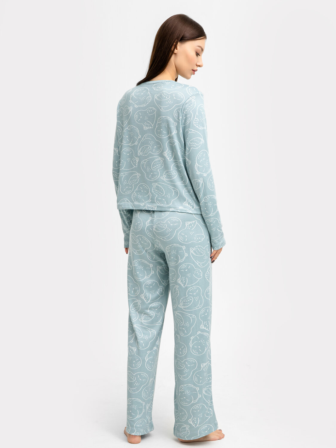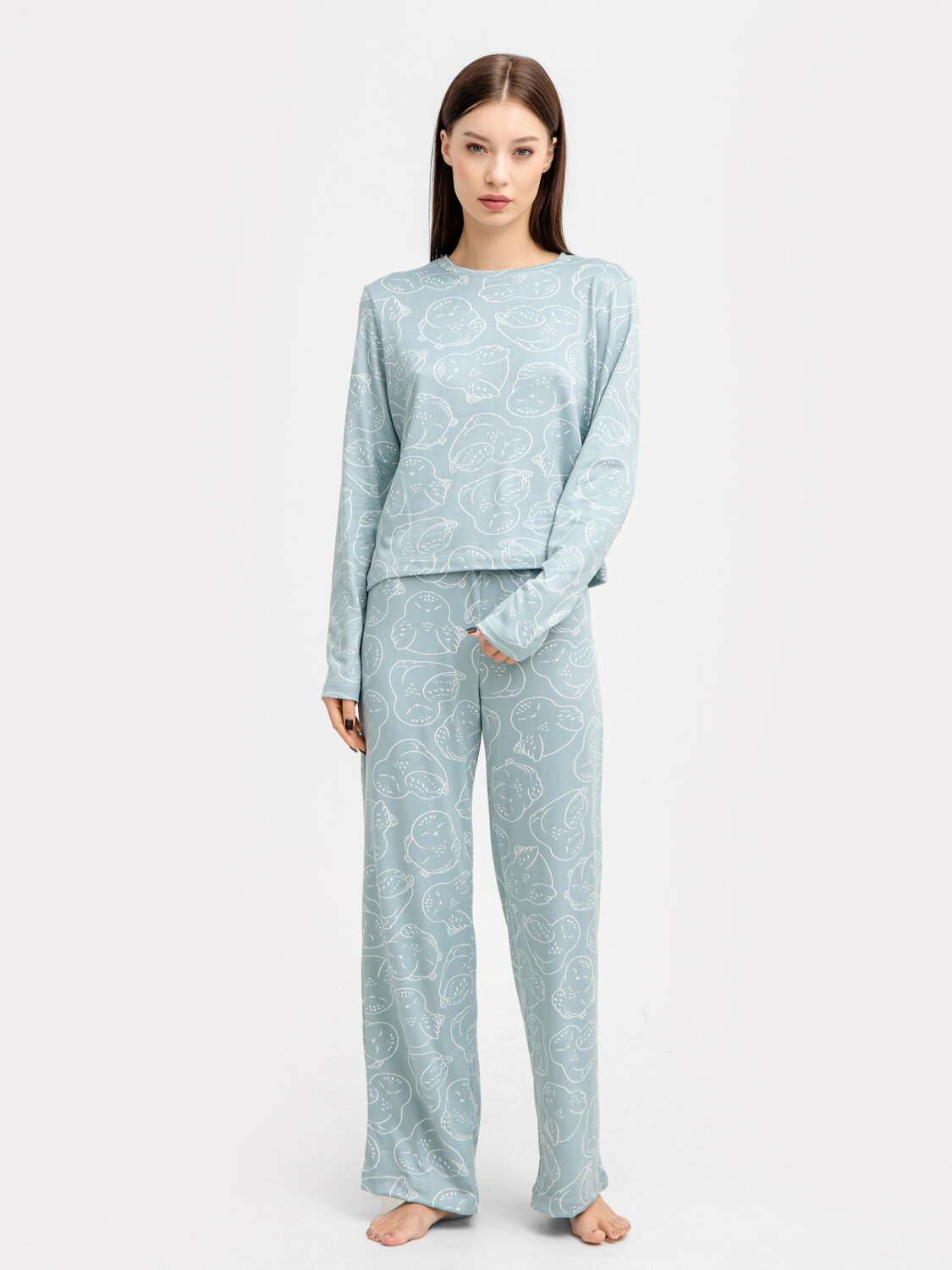 Хлопковый домашний комплект для женщин. Состоит из расслабленного лонгслива и брюк свободного силуэта. Лонгслив с круглым вырезом, длинными рукавами. Брюки прямые, с эластичной тесьмой в поясе. Рекомендуем для крепких снов и домашних дел!