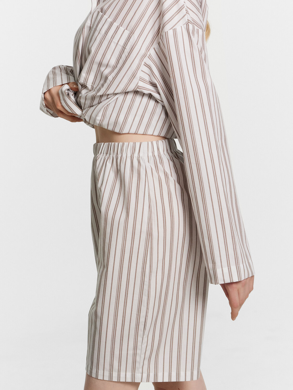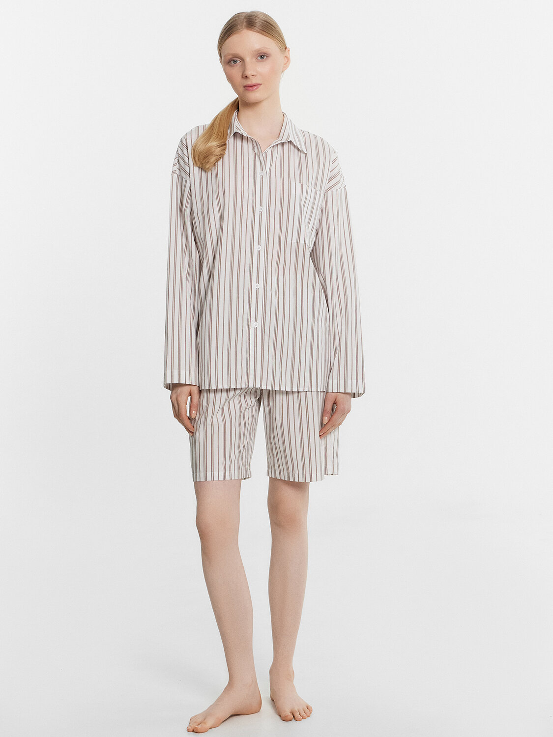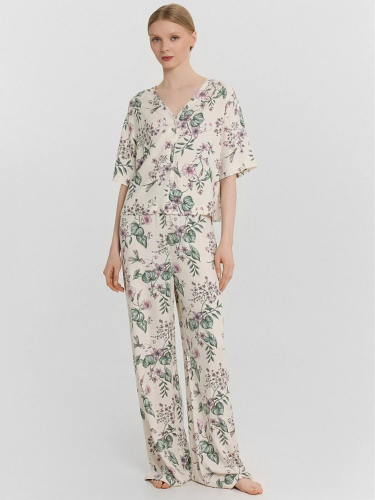 Этот женский домашний комплект, включающий рубашку и шорты, станет отличным выбором для стильного и удобного образа. Рубашка свободного силуэта с классическим отложным воротником, спущенным плечом и длинными рукавами придаёт расслабленный вид. Центральная застежка на пуговицах и накладной карман на груди добавляют функциональности и практичности. Шорты свободного силуэта, удлиненные, с эластичным поясом обеспечивают комфорт и свободу движений, делая их идеальными для повседневной носки и отдыха. Комплект выполнен из лёгкого и дышащего материала, который обеспечивает комфорт на протяжении всего дня. Наслаждайтесь комфортом и стилем каждый день!