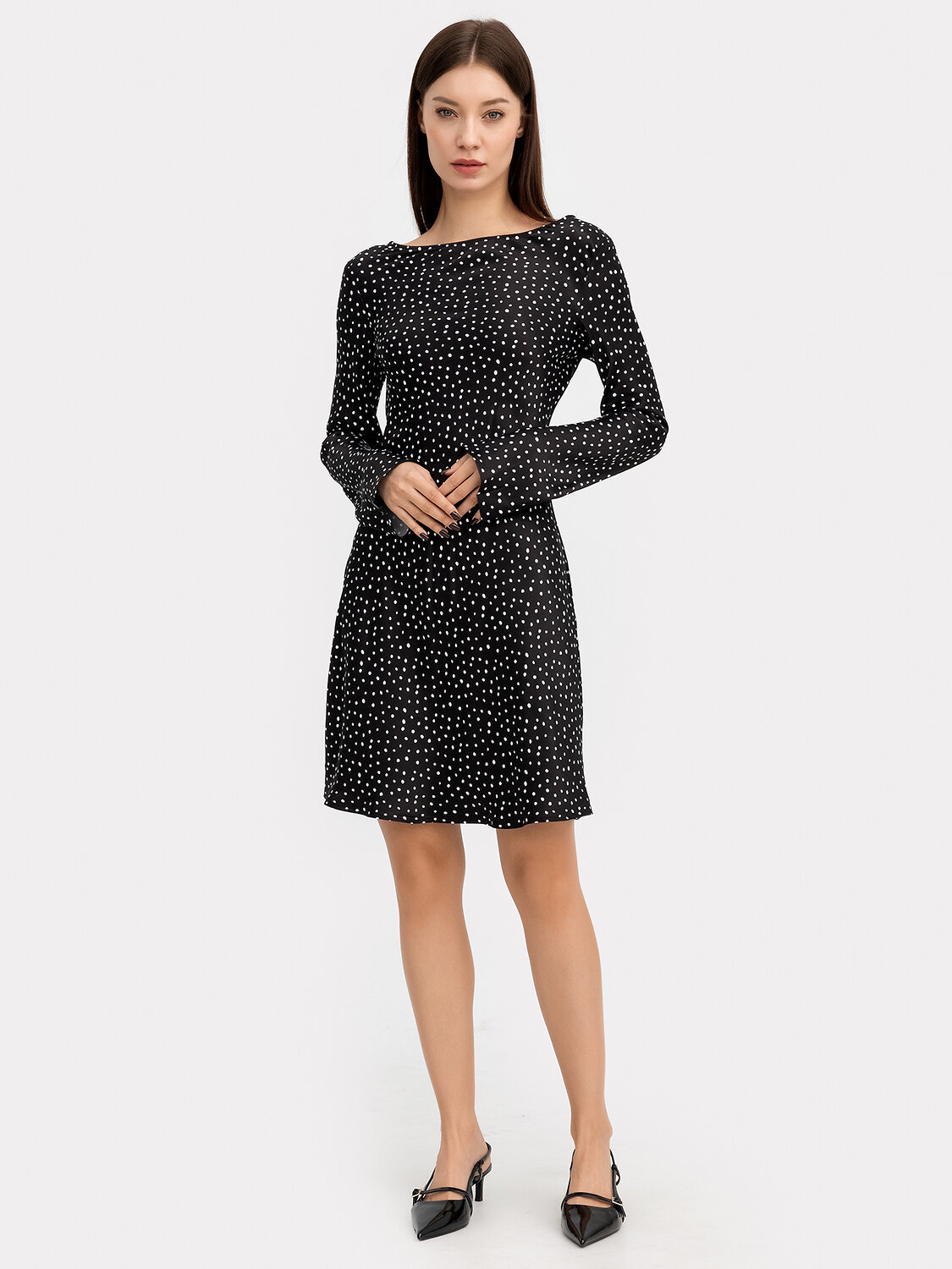 ст. цена1904руб.! MARK FORMELLE Платье 152601белый горошек на черном