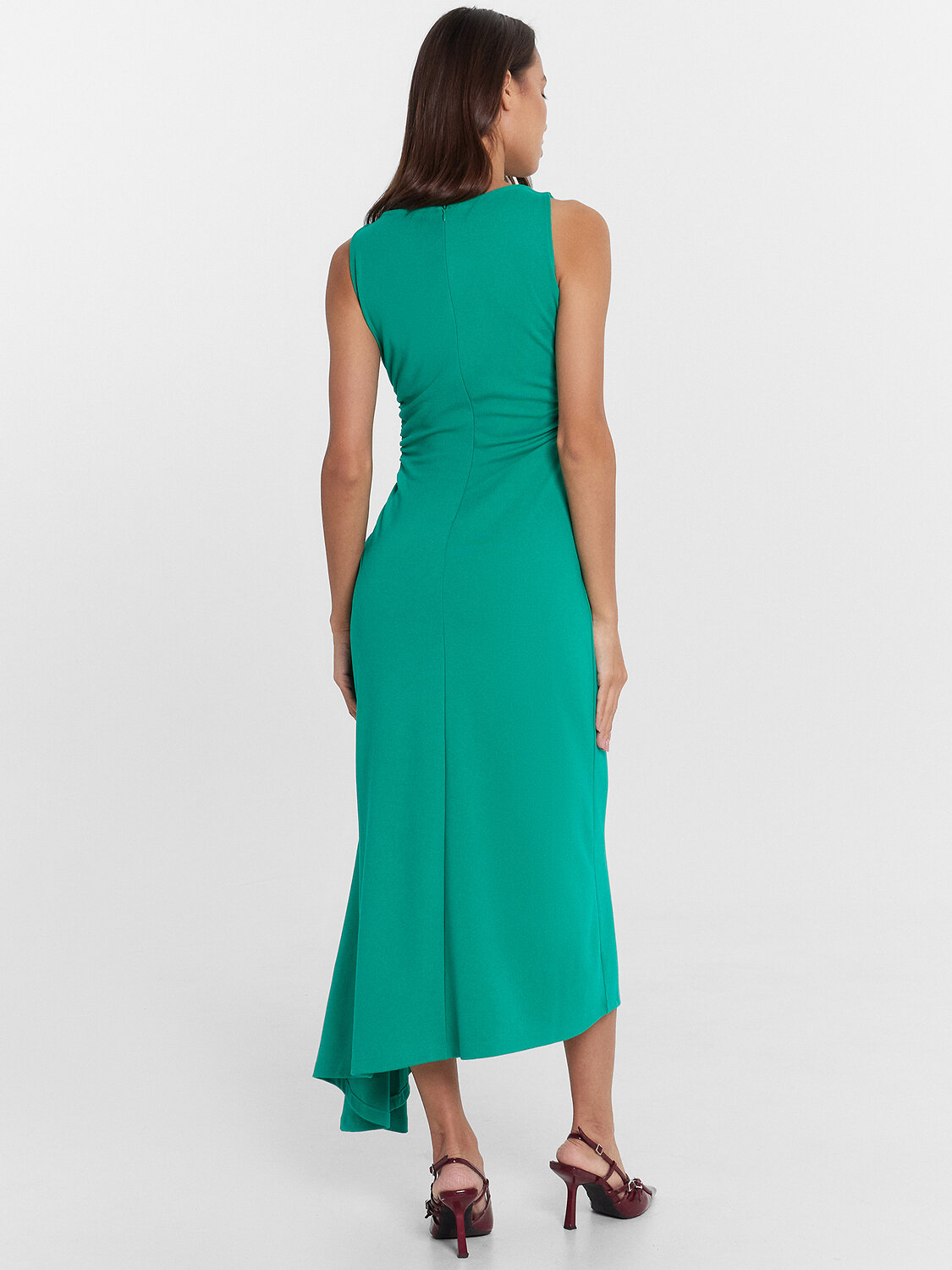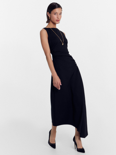 Платье асимметричное. В правом боковом шве сборка на верхней части.