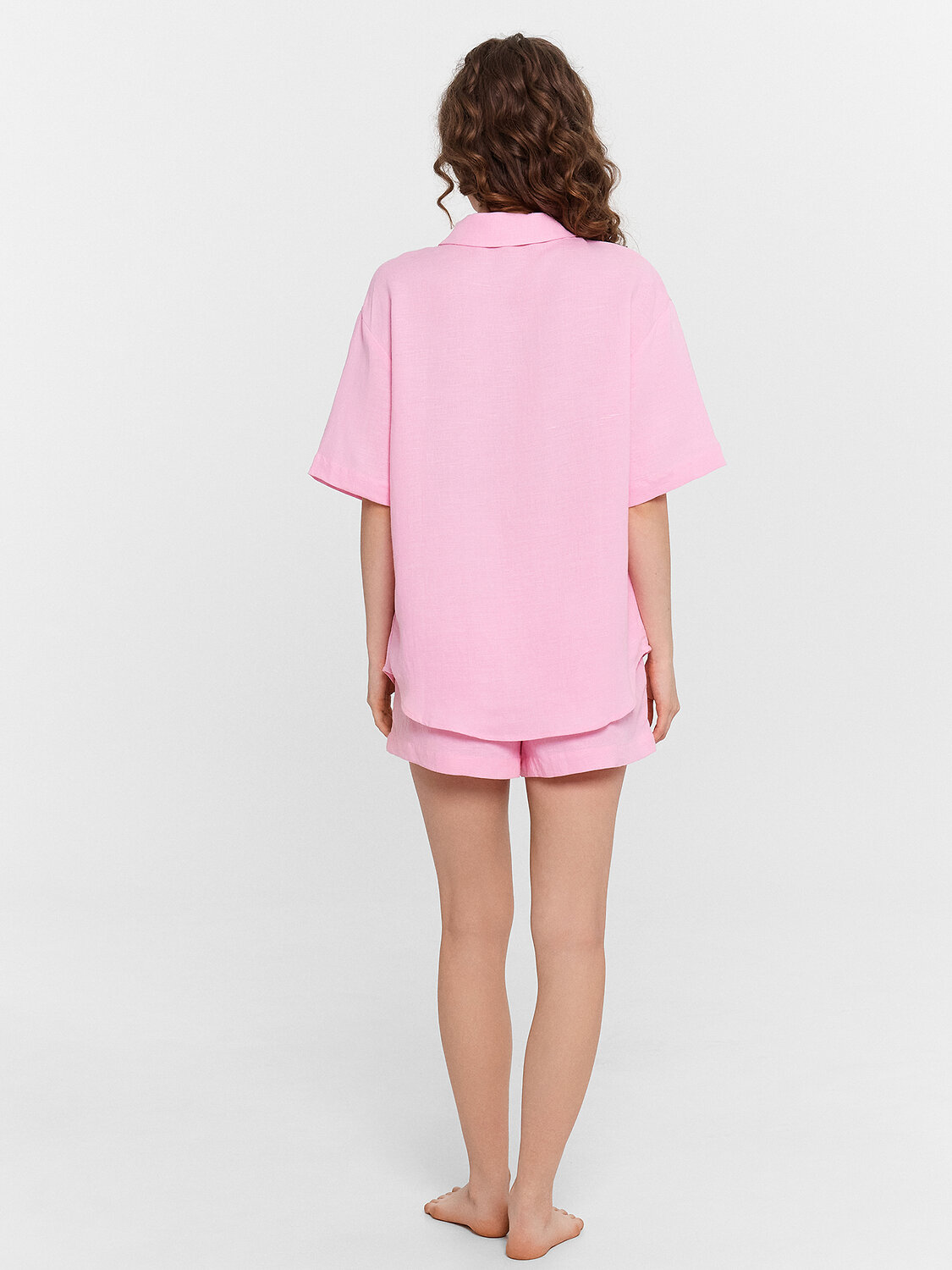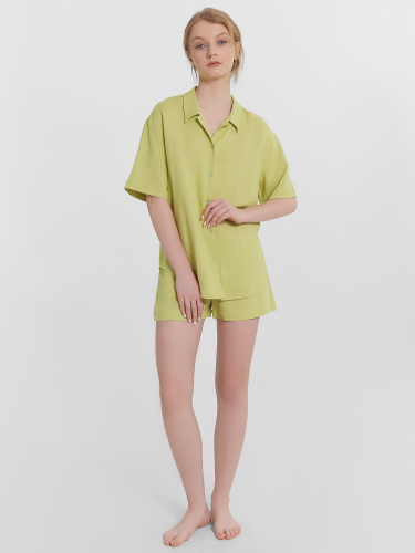 Женская пижама, выполненная из сочетания льна и вискозы. Она сочетает в себе стиль и комфорт, идеально подходя для повседневного ношения дома. Рубашка свободного силуэта с отложным воротником и короткими рукавами имеет центральную застежку на пуговицах, что обеспечивает удобство и легкость в носке. Шорты свободного кроя с высокой посадкой и карманами в боковых швах добавляют практичности и комфорта. Модель выполнена из натурального льна и вискозы. Такое сочетание материалов обеспечивает оптимальный комфорт и долговечность. Лён - это натуральный материал, который обладает отличными дышащими свойствами и дарит прохладу в жаркие дни. Вискоза, в свою очередь, добавляет мягкости и шелковистости, делая изделие особенно приятным к телу. Эта пижама станет вашим любимым выбором для уютных вечеров и расслабленного отдыха дома.
