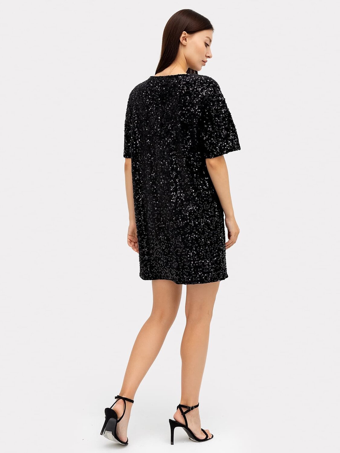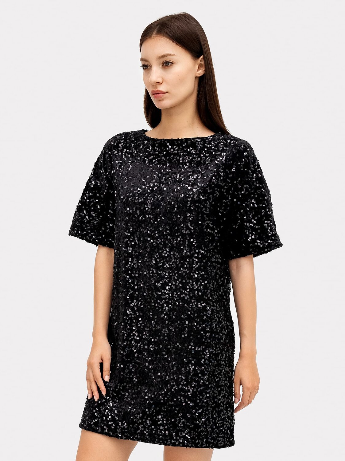 Нарядное платье женское свободного силуэта из трикотажного полотна велюр с пайетками.