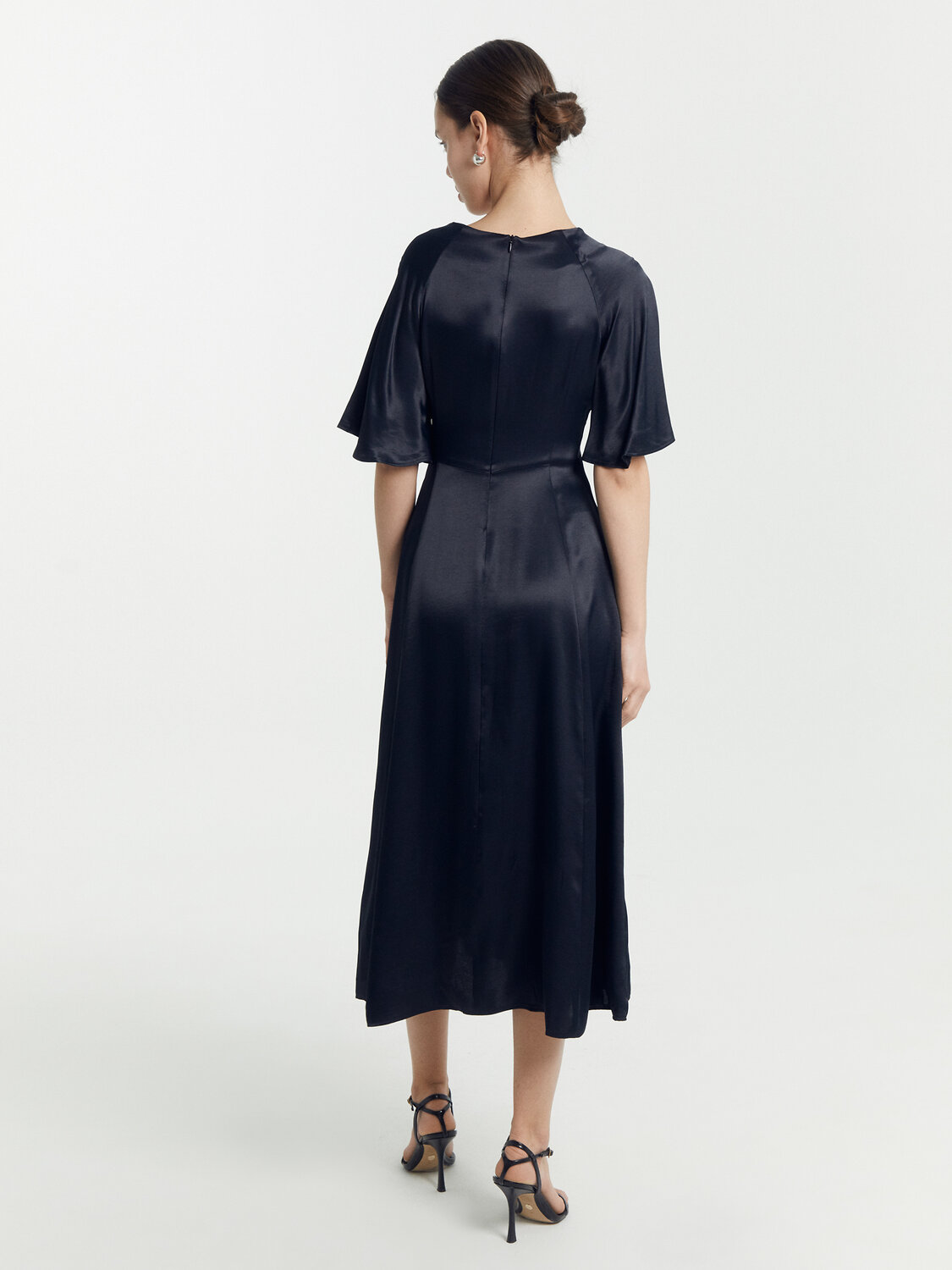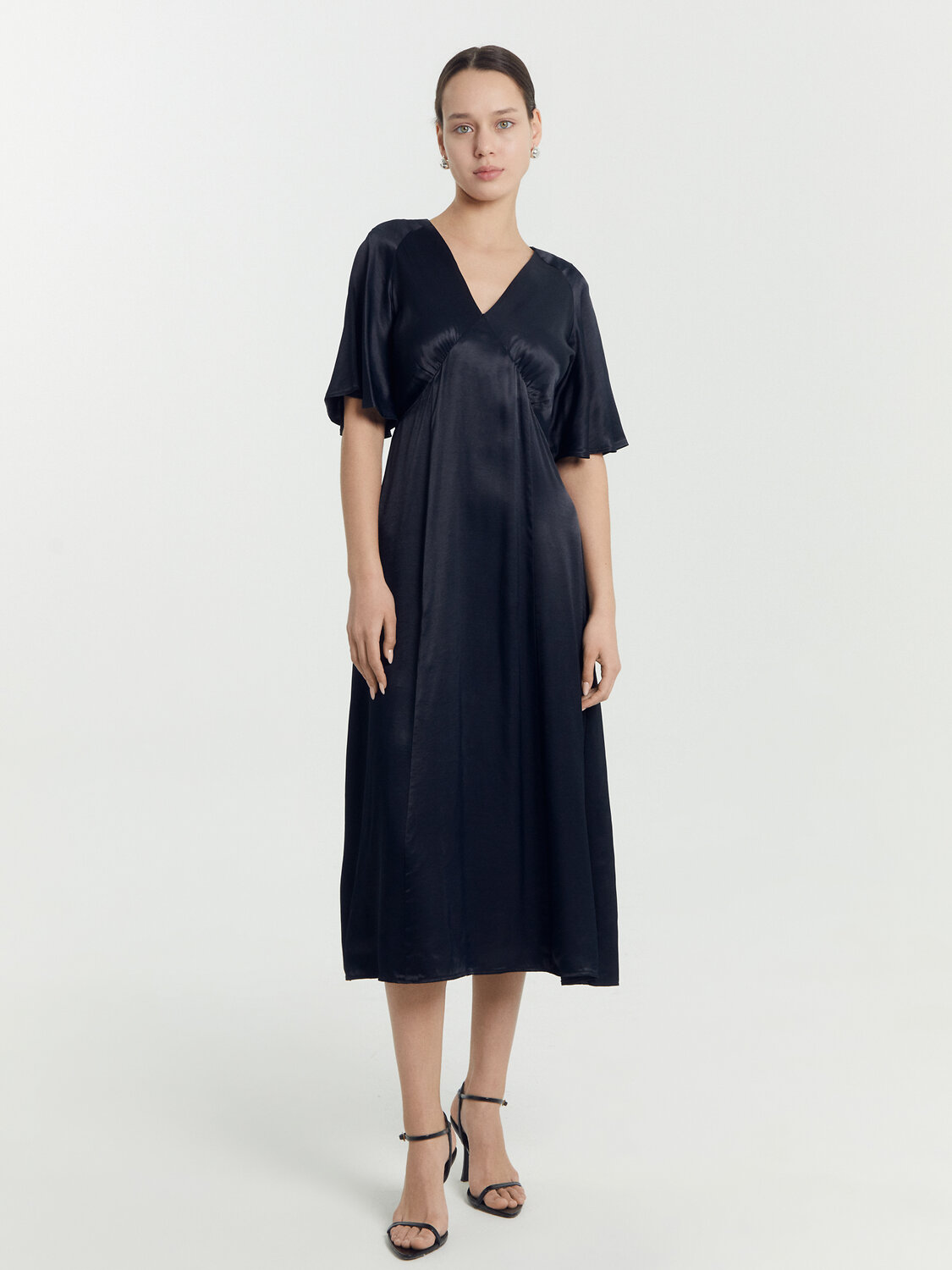 Низ платья с рельефами по переду и спинке, расширяется к низу.