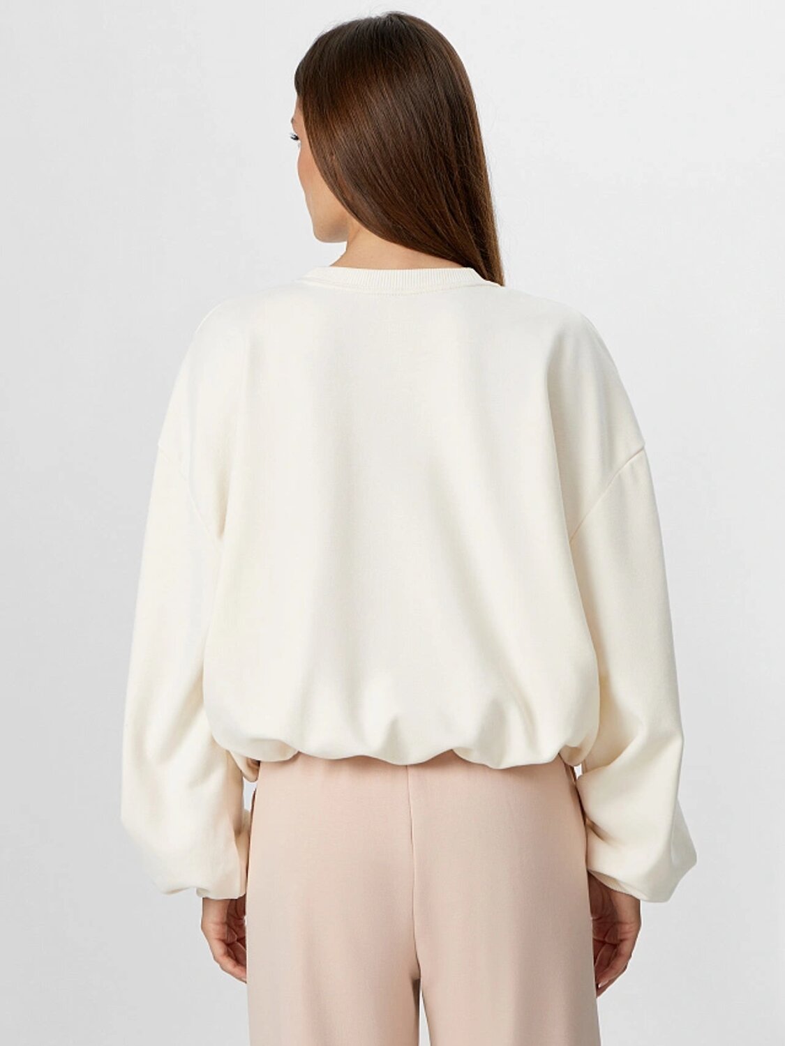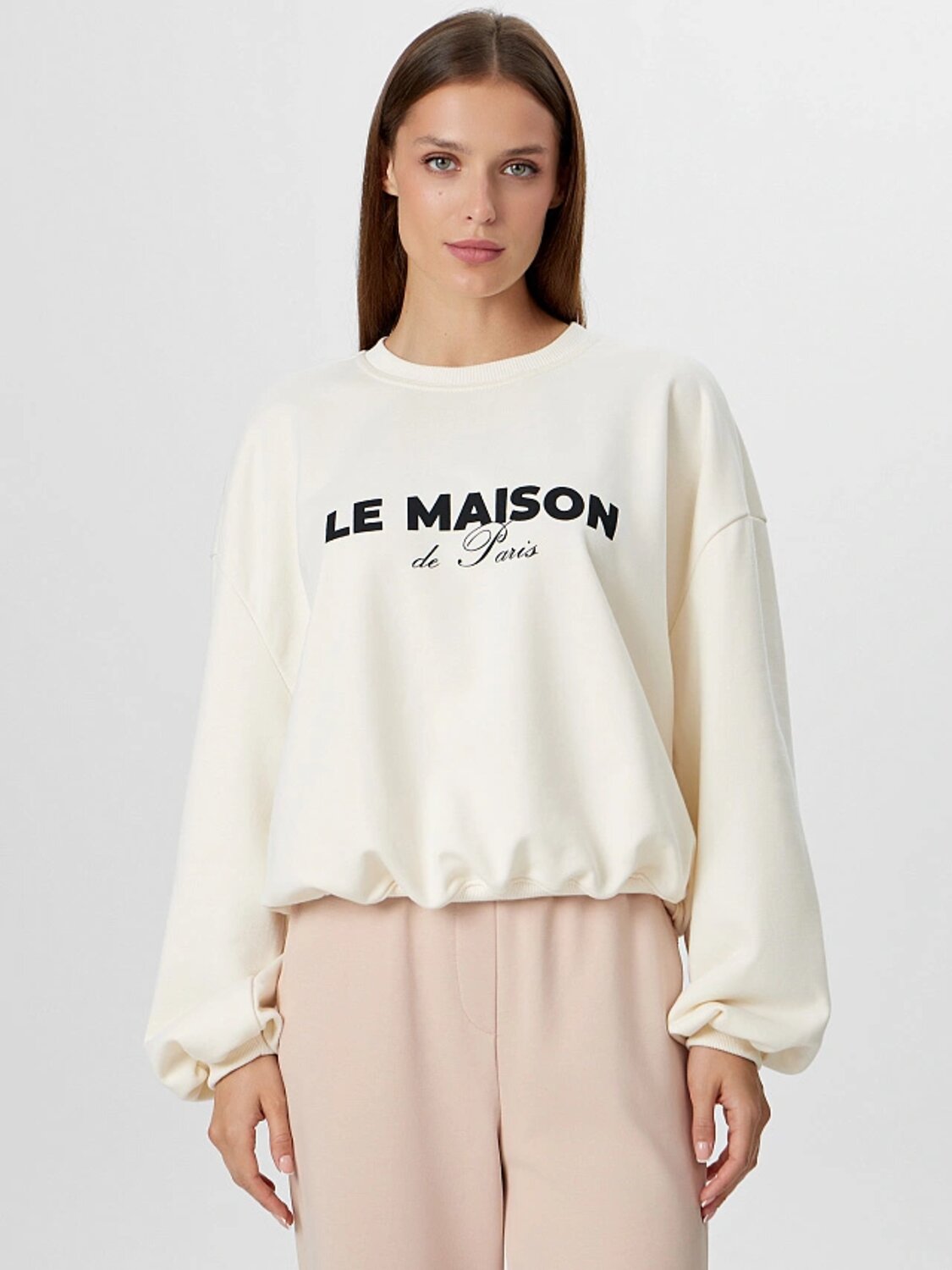 Женский укороченный свитшот свободного кроя - идеальное дополнение к вашему гардеробу. Изделие выполнено из футера трехнитка без подчеса, что делает его приятным к телу и подходящим для различных погодных условий. Круглая горловина придает модели классический и элегантный вид. А спущенное плечо и длинные рукава обеспечивают комфорт и свободу движений, делая свитшот идеальным для повседневного ношения. Эластичные манжеты из рибаны по низу рукавов создают дополнительный уровень комфорта и предотвращают соскальзывание рукавов. Такой свитшот станет отличным выбором для тех, кто ценит стиль и удобство.