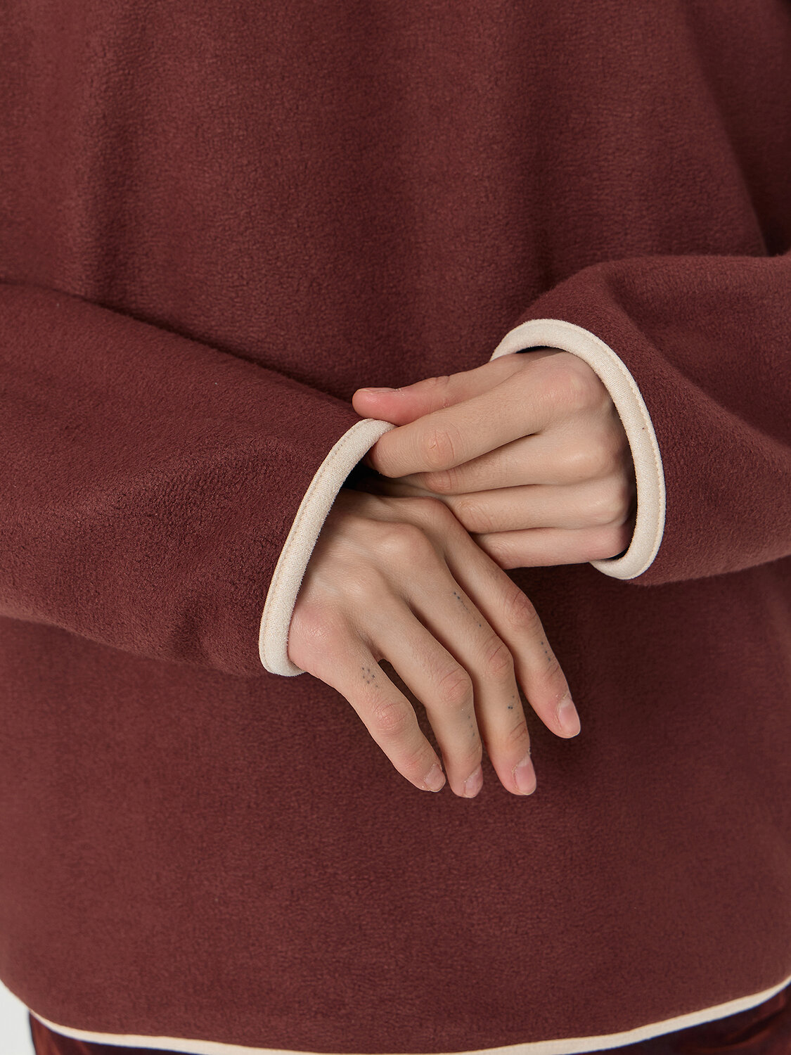 Представляем невероятно мягкую и нежную толстовку, которая станет отличным дополнением вашего гардероба. Модель свободного силуэта с круглой горловиной и воротником-стойкой обеспечивает максимальный комфорт. Центральная застежка на молнию и длинные рукава со спущенной линией плеча делают эту толстовку удобной и практичной. А боковые карманы с подкладкой из кулирки добавляют удобство и функциональность. Изделие выполнено из флиса - мягкого, теплого и дышащего материала, который быстро сохнет и прекрасно сохраняет тепло. Флис также является легким и долговечным, обеспечивая уют и комфорт в любую погоду.