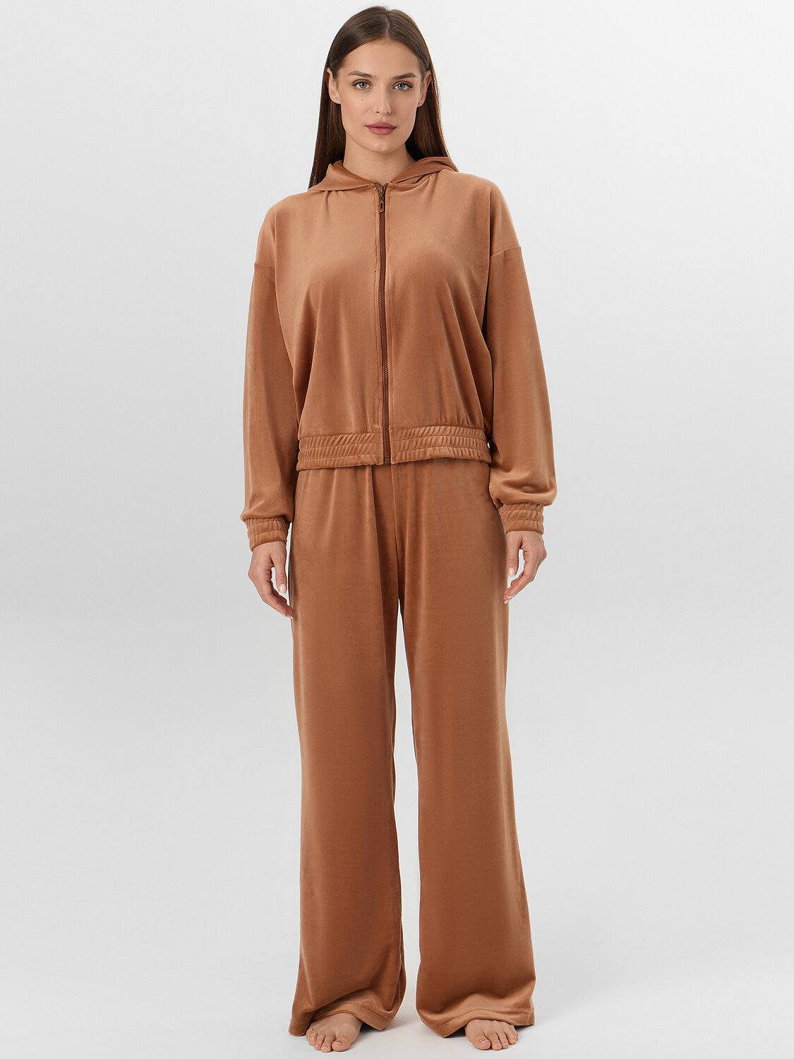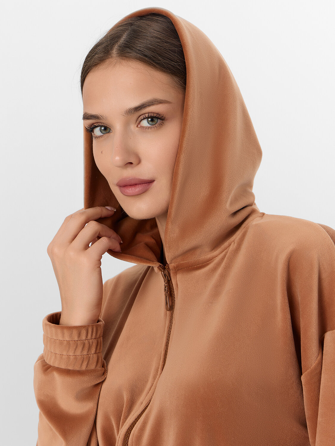Женская домашняя толстовка из мягкого велюра — это воплощение уюта и расслабленного стиля. Модель свободного кроя с мягким капюшоном и удобной молнией создает ощущение комфорта и расслабленности. Элегантный велюр с добавлением эластана нежно обволакивает фигуру, сохраняя тепло и даря приятные тактильные ощущения.