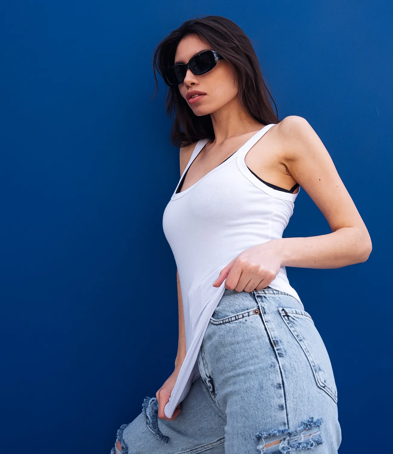 Базовая однотонная майка станет практичным и стильным вариантом для повседневнего образа. Изделие изготовлено из высококачественного материала, который приятен к телу и позволяет коже дышать.