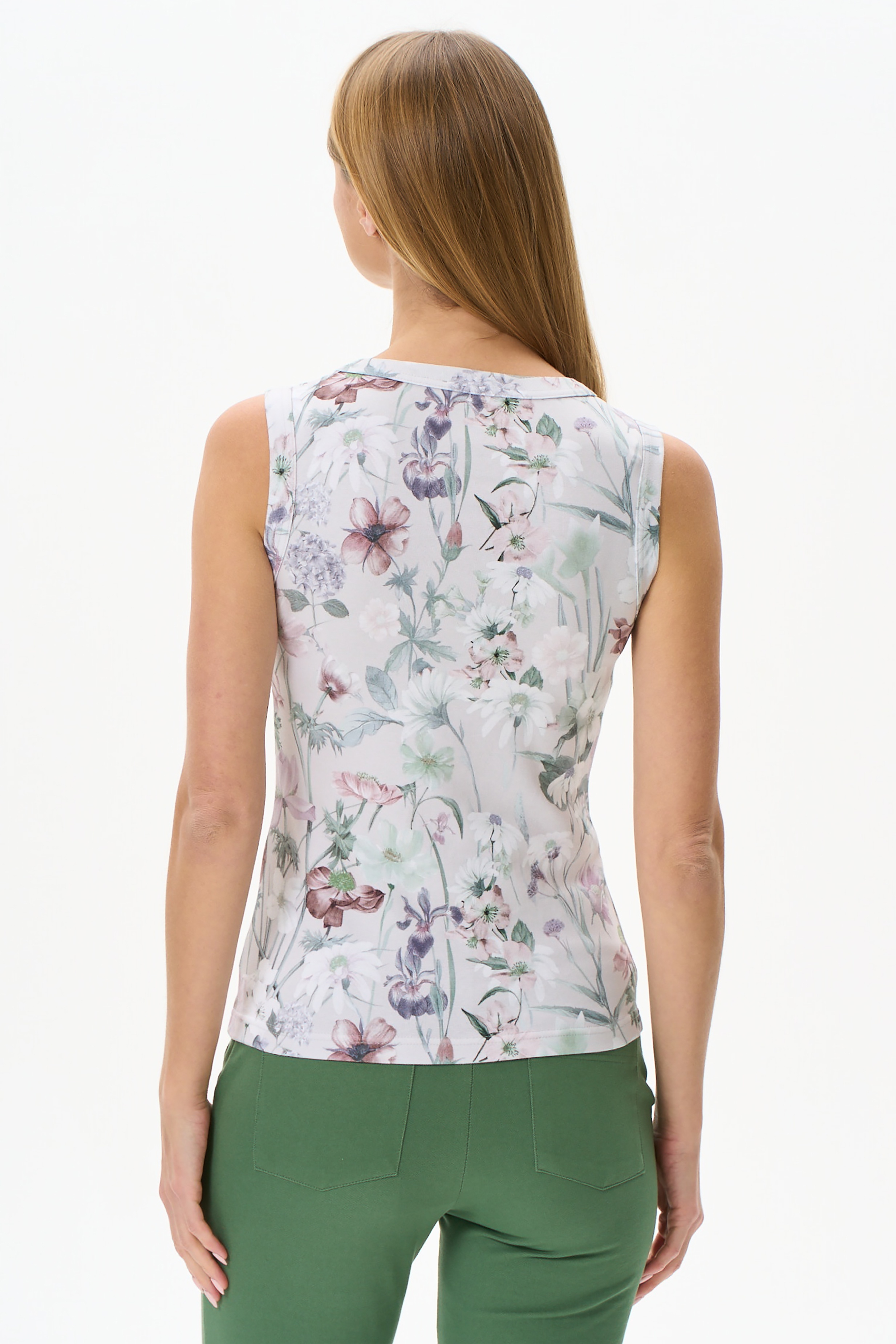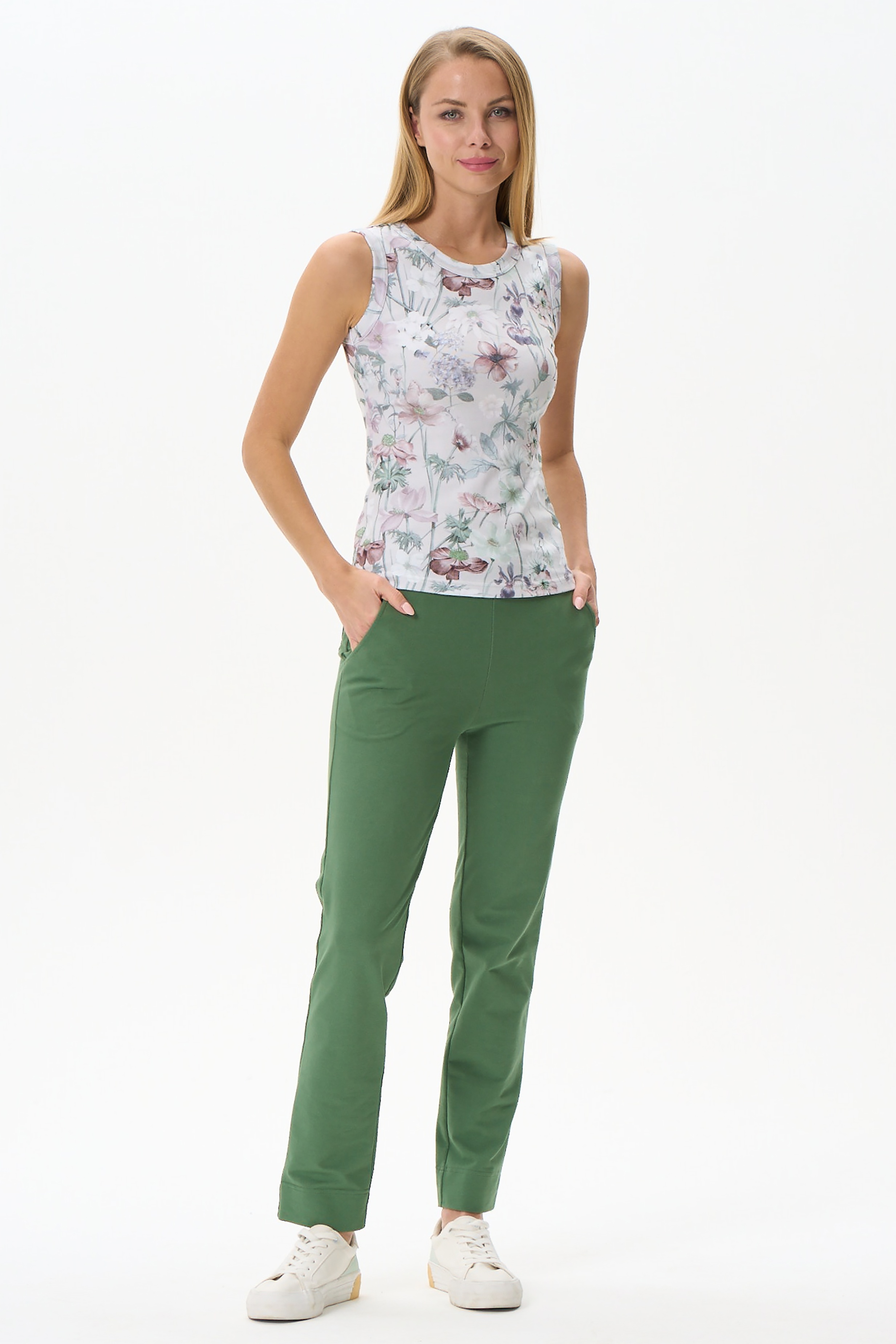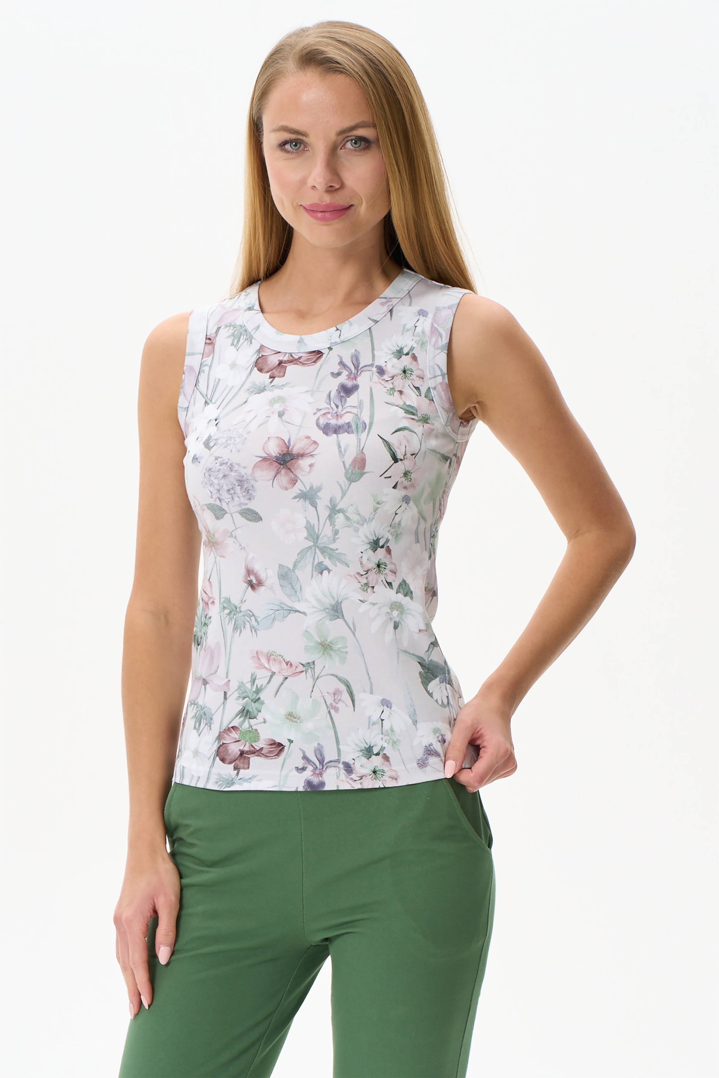 Топ выполнен из хлопкового трикотажного полотна с эластаном - рибана. Модного прилегающего силуэта. Круглый вырез горловины и завышенные проймы обработаны широкой планкой. Рост модели на фото 177см.