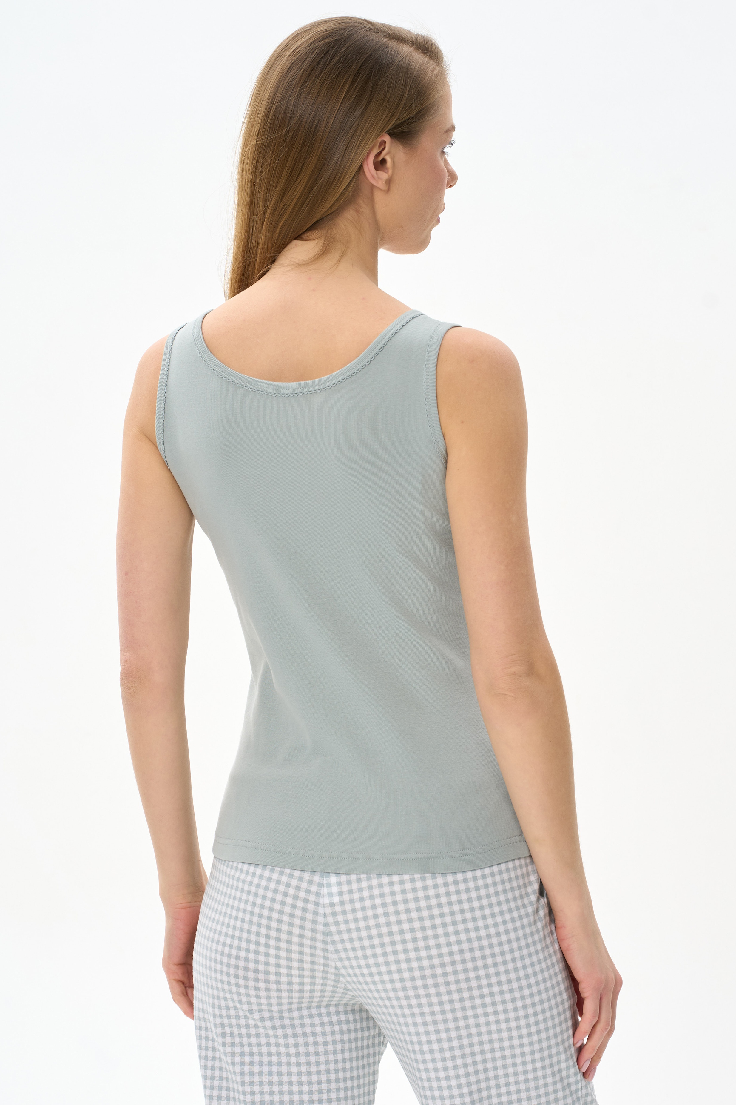 100% хлопок Комфортная майка из хлопкового трикотажного полотна рибана. Вырез горловины и проймы окантованы. Рост модели на фото 175 см.