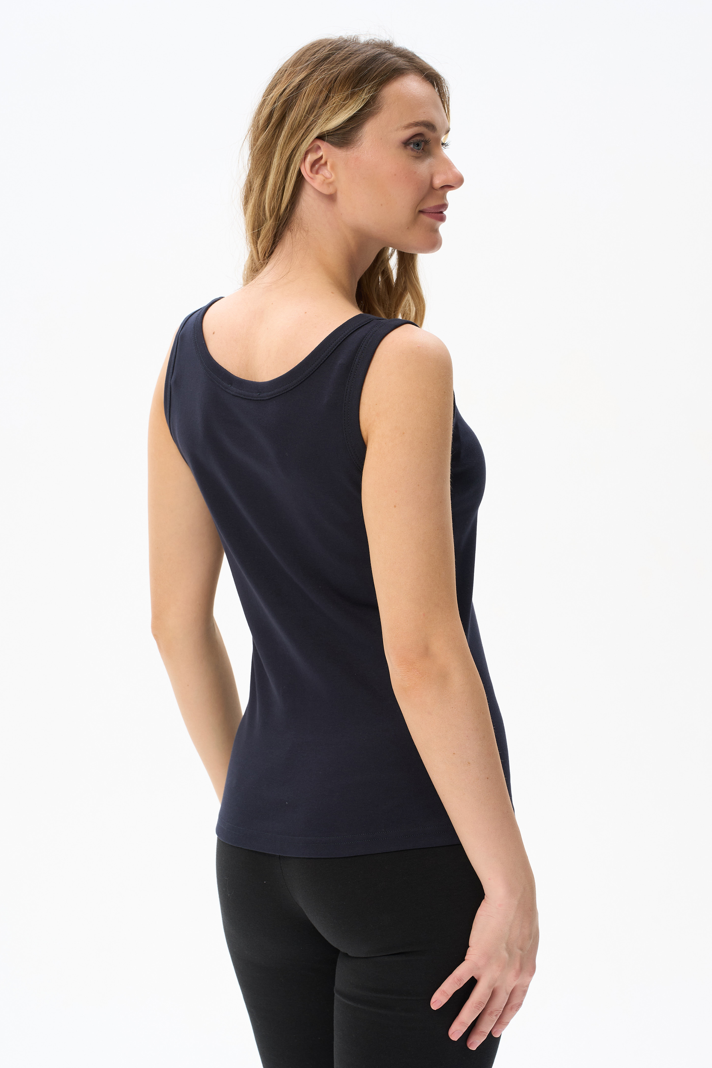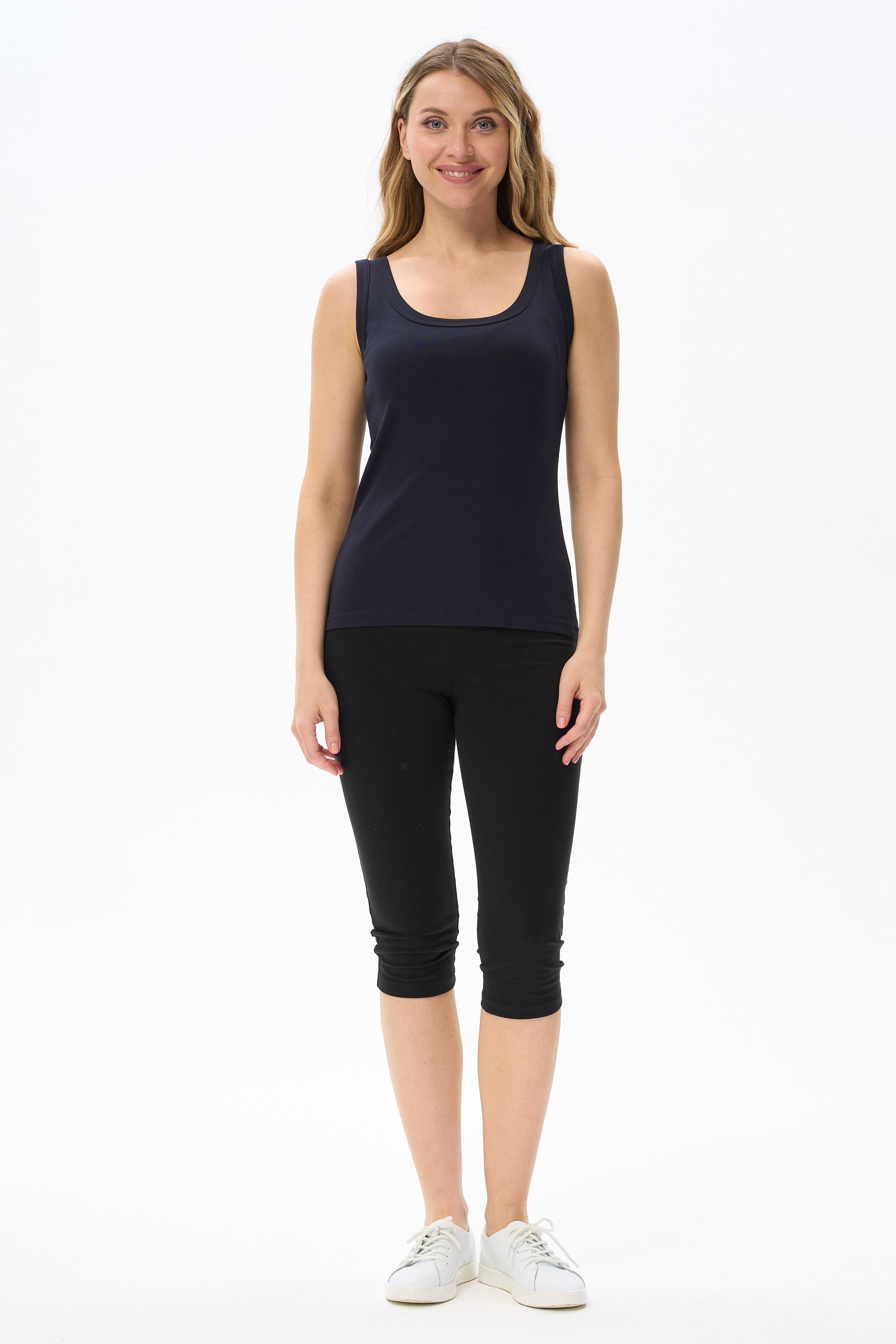 100% хлопок Комфортная майка из хлопкового трикотажного полотна рибана. Вырез горловины и проймы окантованы. Рост модели на фото 178 см.