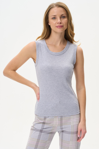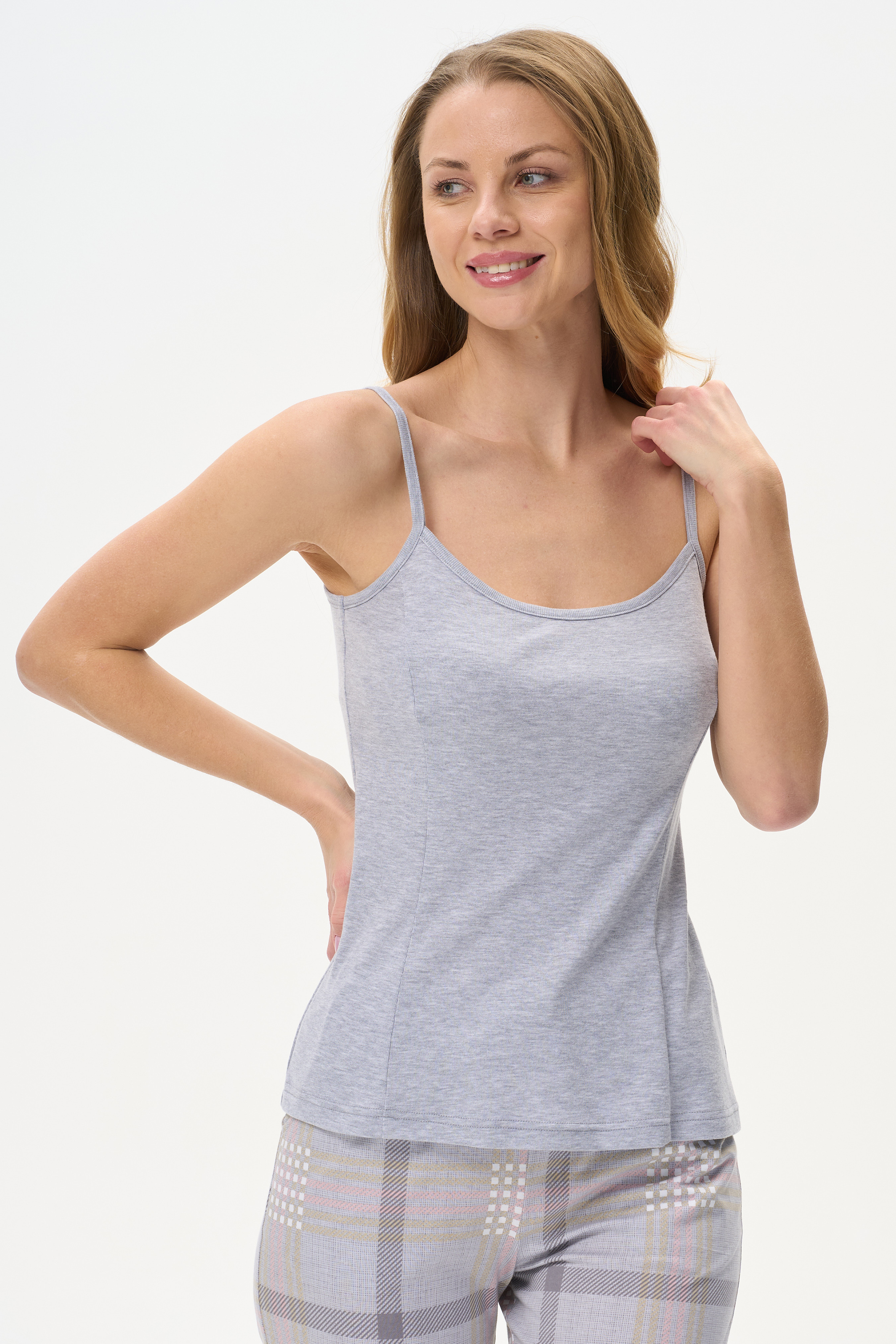 Майка на тонких бретелях из хлопкового трикотажного полотна - рибана. Рост модели на фото 178 см.