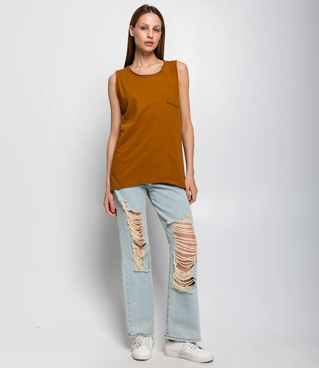 Майка – это одежда, которая выделяет женственность любой девушки. Данная модель отлично подойдет для любого сезона. Майка выполнена в свободном крое, что создает расслабленный и уютный силуэт. На груди располагается небольшой карман, которое добавляет функциональный и стильный акцент. Для изготовления использована ткань 100% хлопка, которая характеризуется отменным качеством. Даже после многих стирок изделие не утратит первоначальной привлекательности. Вы обязательно будете ее носить с большим удовольствием. Обратите внимание на насыщенный оттенок. Он полностью соответствует фотографии на сайте. Чтобы вы были уверены в размере, мы представили на странице таблицу. Воспользовавшись ею, вы сможете сами сделать мерки и удостовериться. Предложенная нами цена является доступной. Не откажите себе в удовольствии быть элегантной!